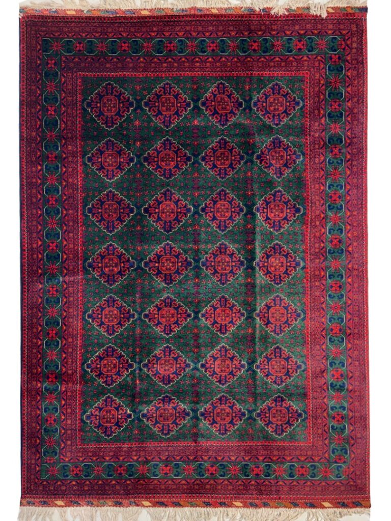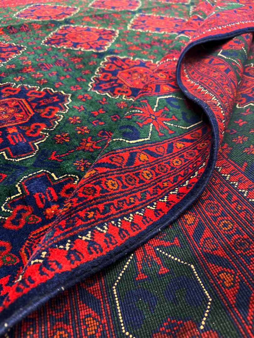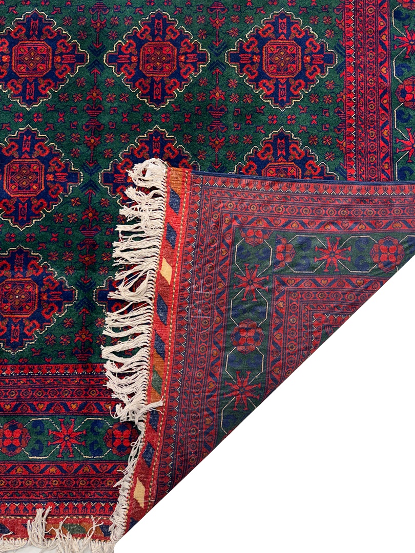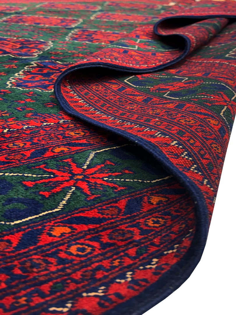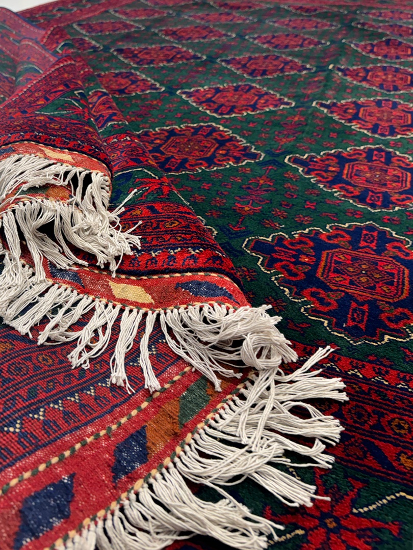 دست بافت خان محمدي 200*300 مستطيل خان محمدي 40 رج کرک براق سبز لجني لاکي الوان 20 Kg
