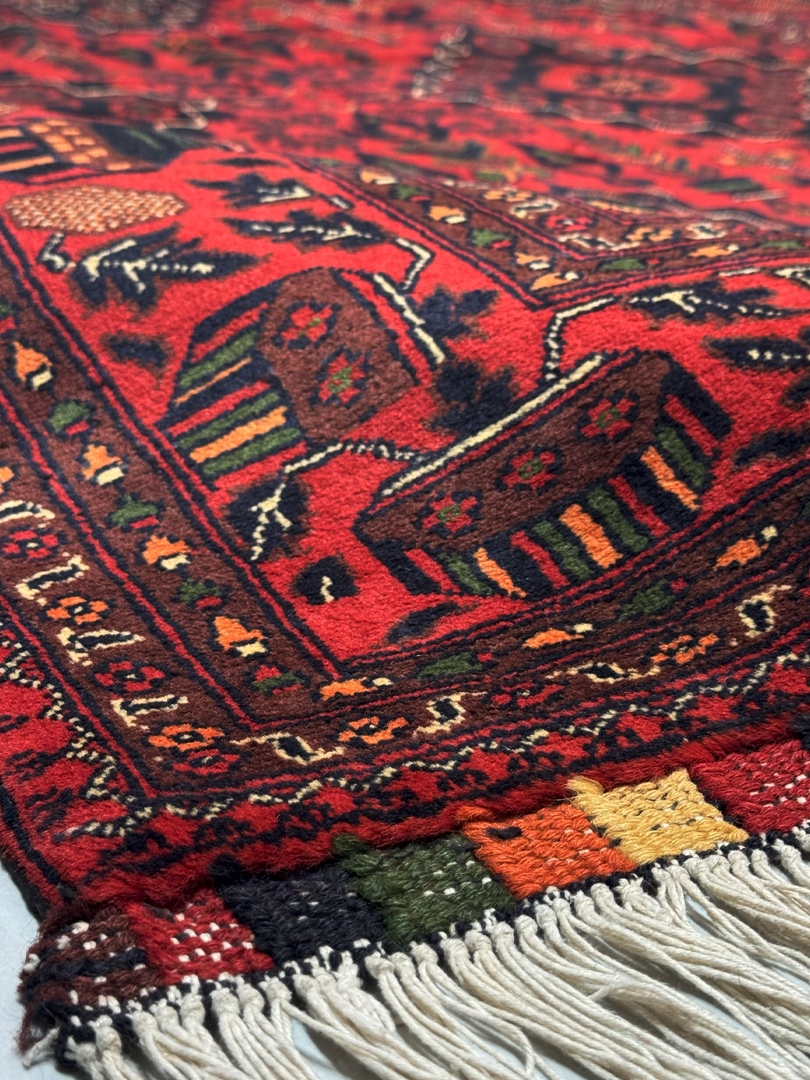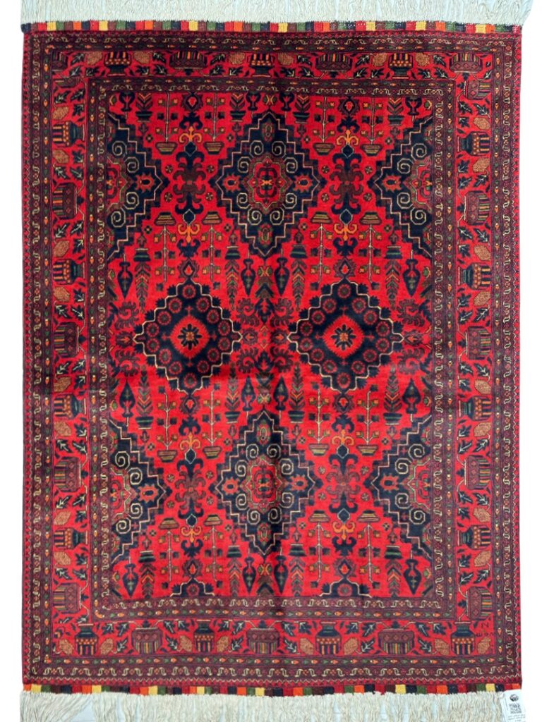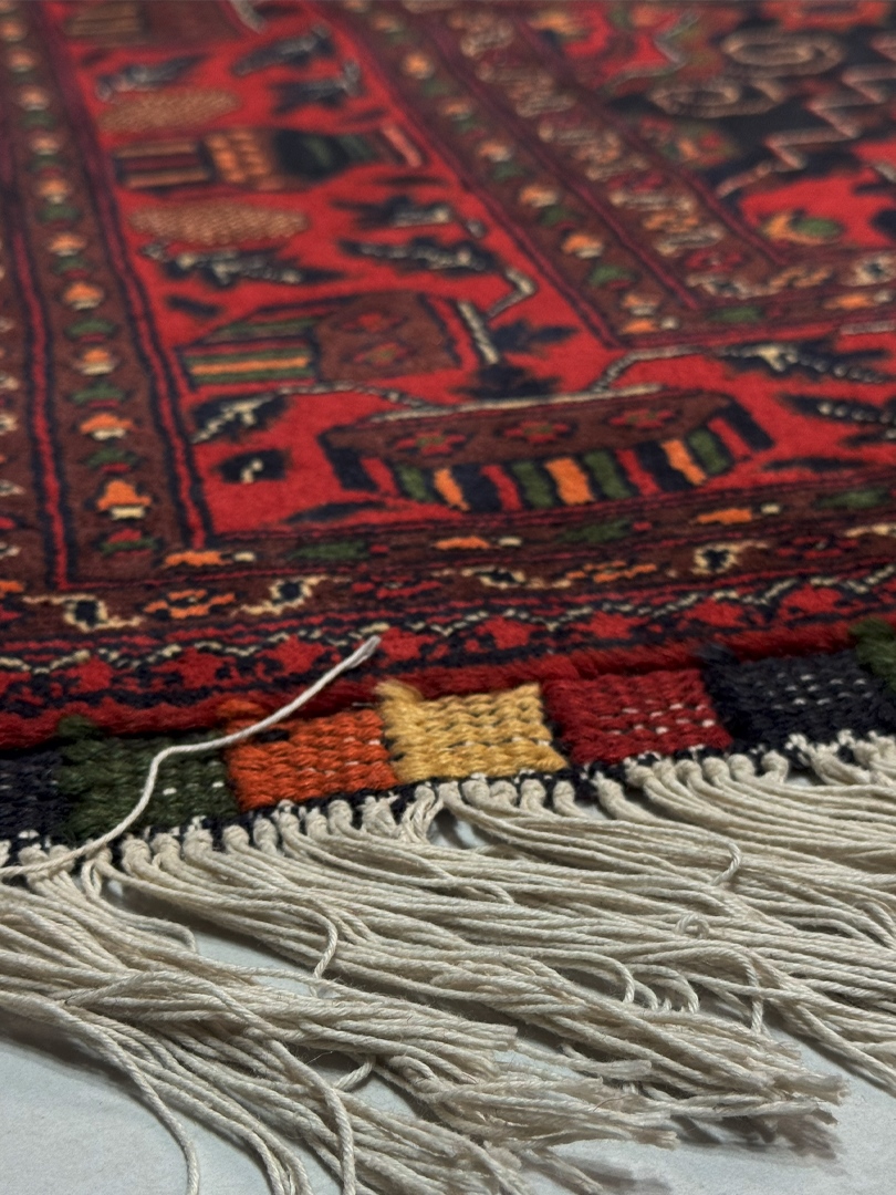 دست بافت خان محمدي 100*150 مستطيل خان محمدي 40 رج کرک قرمز قرمز لاکي 7 Kg