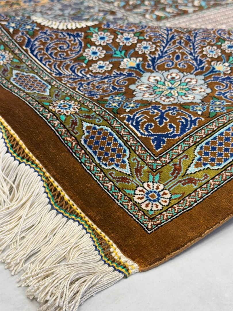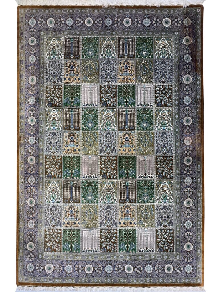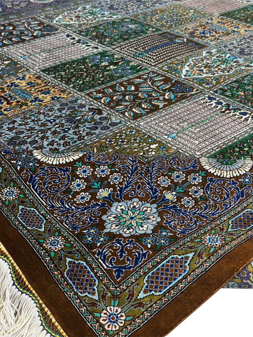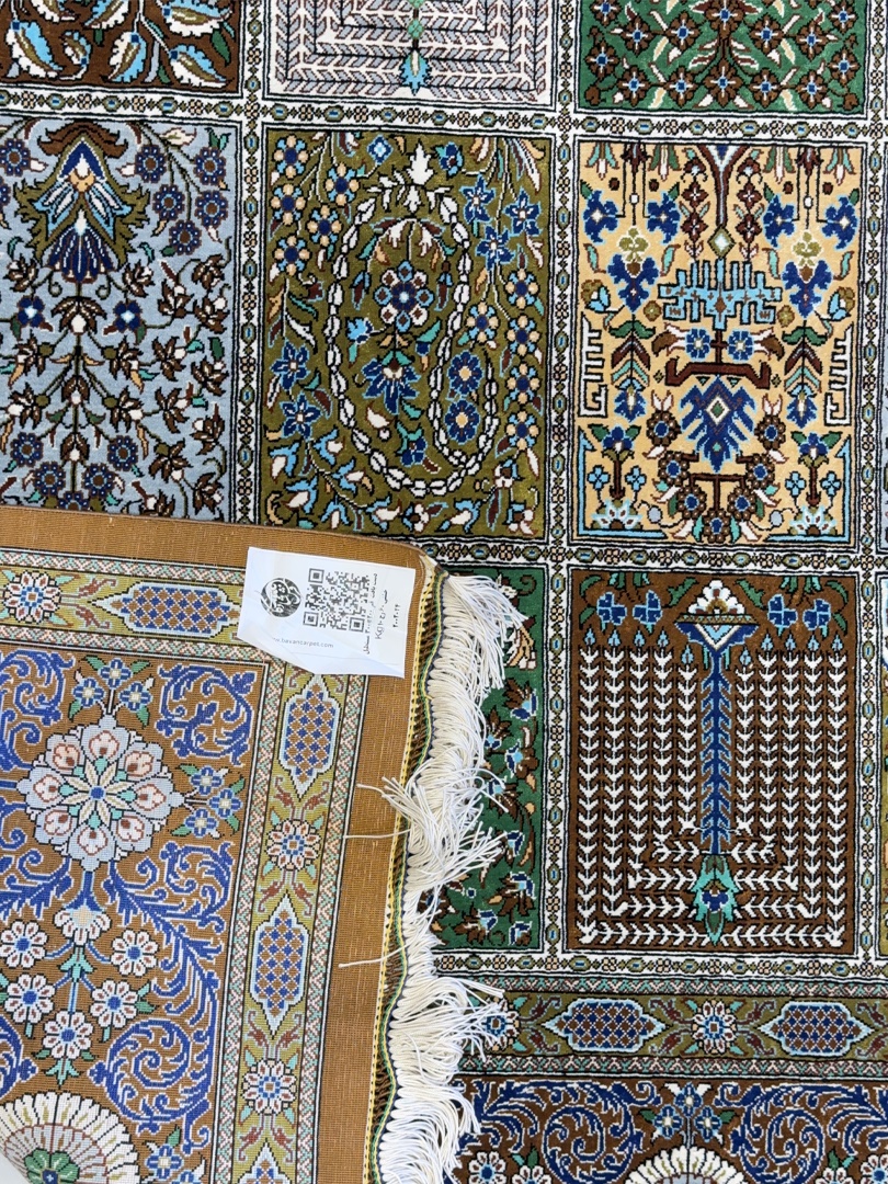 دست بافت قم 200*300 مستطيل خشتي 60 رج تمام ابريشم الوان الوان 10 Kg