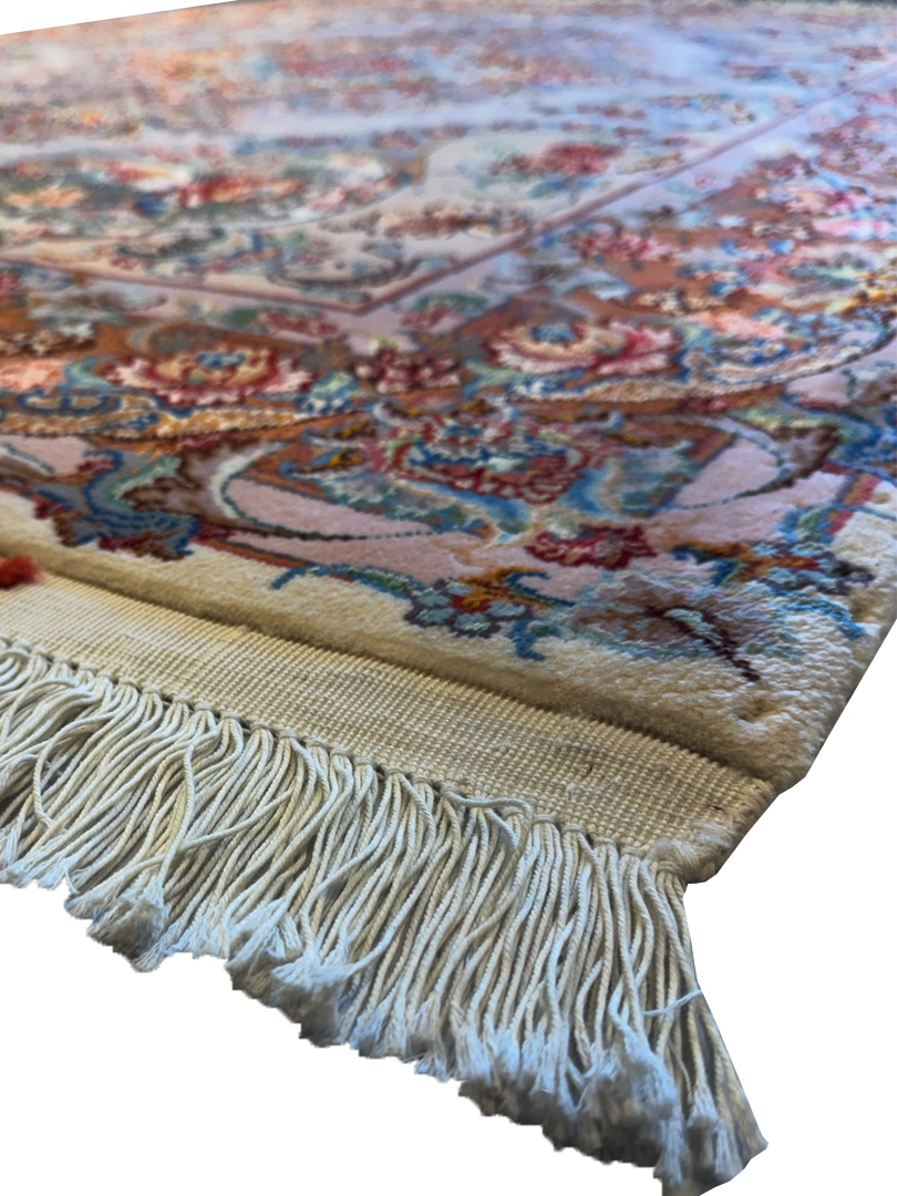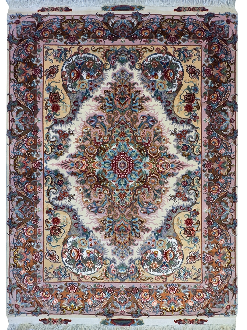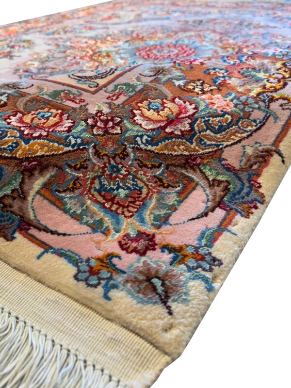 دست بافت تبريز 150*200 مستطيل خطيبي 40 رج کرک و ابريشم کرم مسي 8 Kg