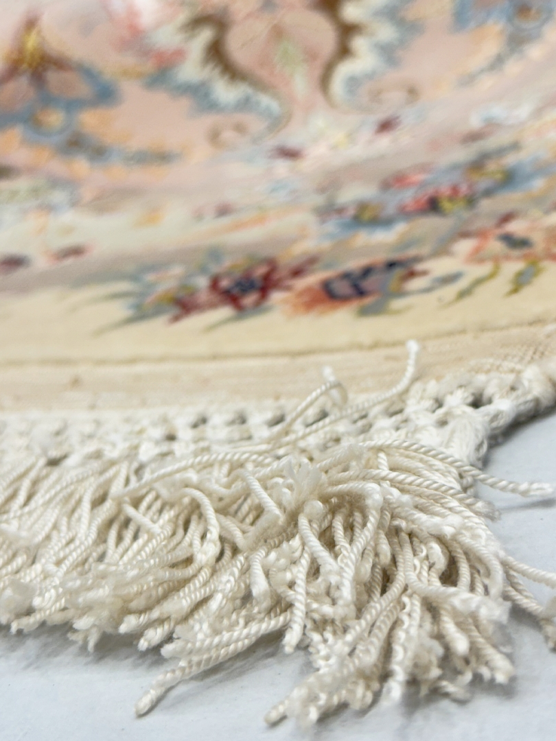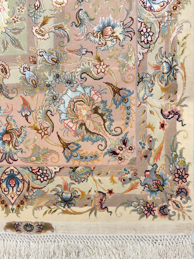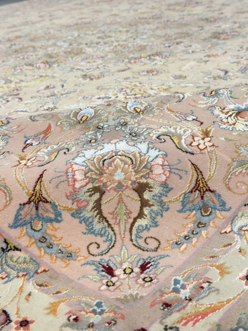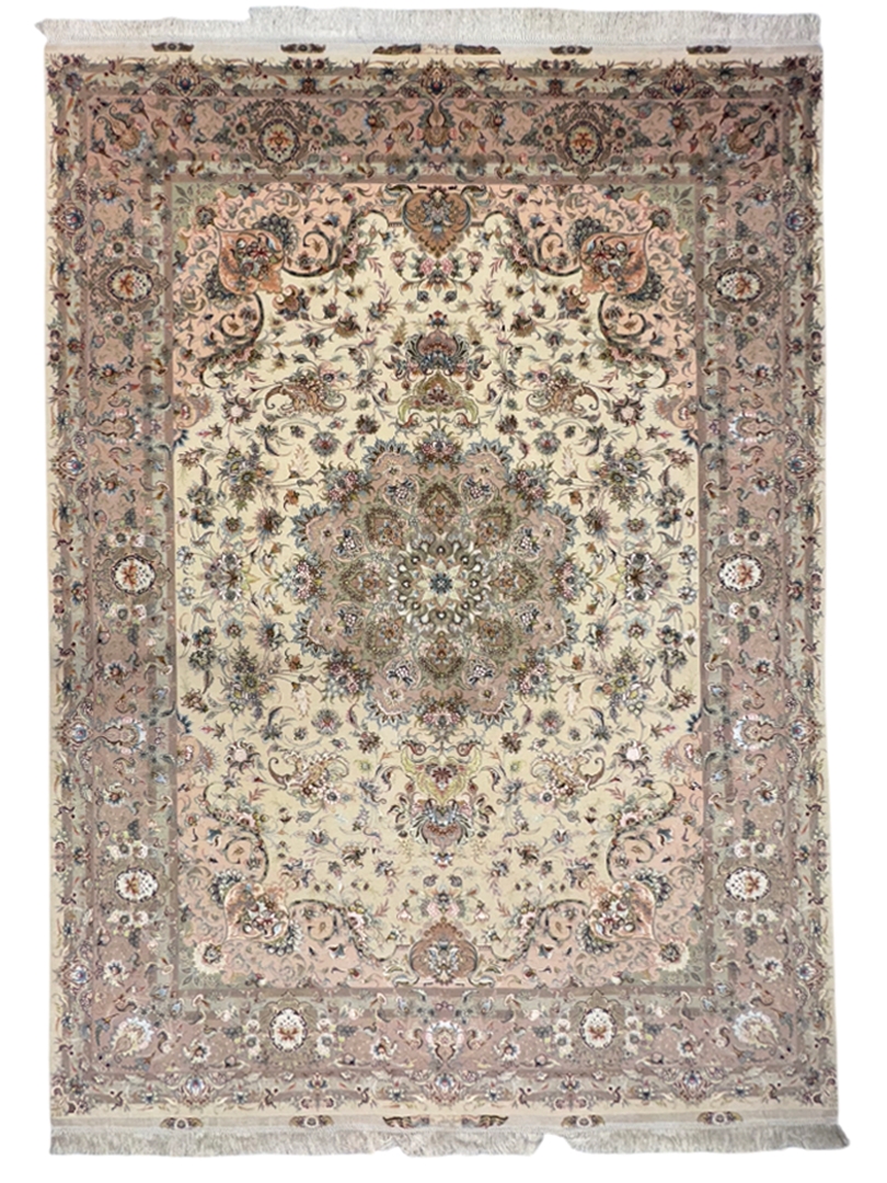 دست بافت تبريز 250*350 مستطيل خطيبي 52 رج کرک و ابريشم کرم خاکي 25 Kg
