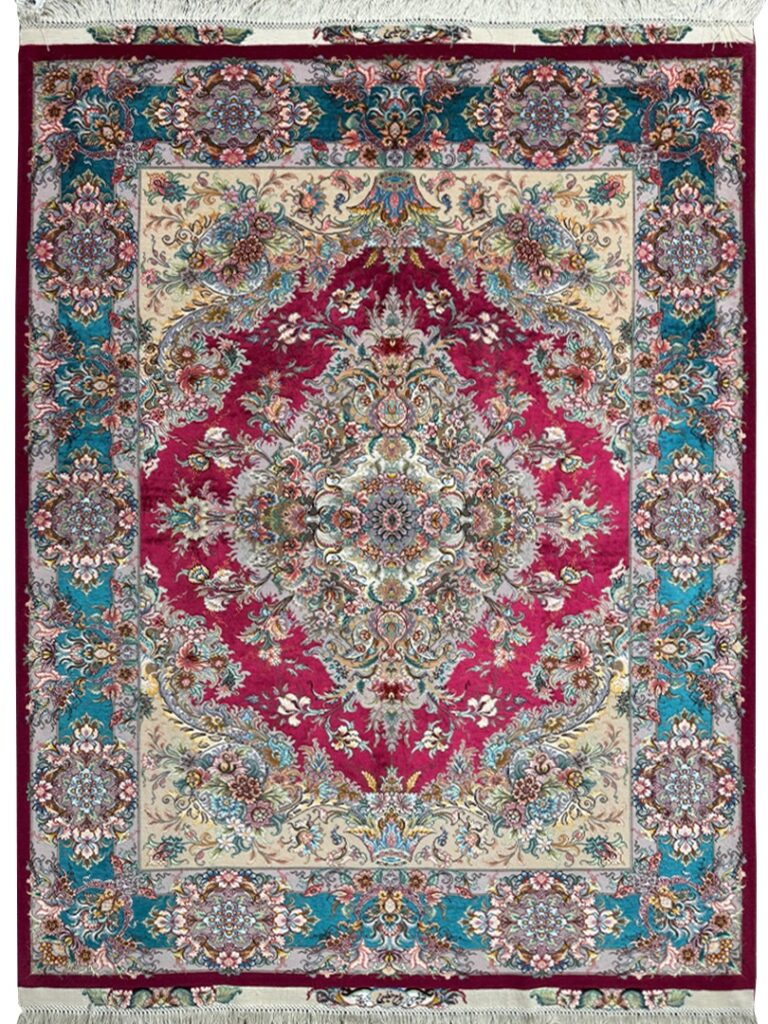 دست بافت تبريز 150*200 مستطيل خطيبي 60 رج کرک و ابريشم شرابي شرابي 8 Kg