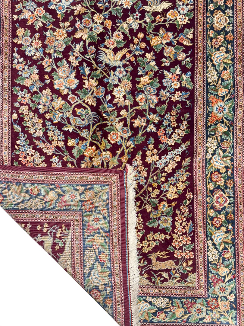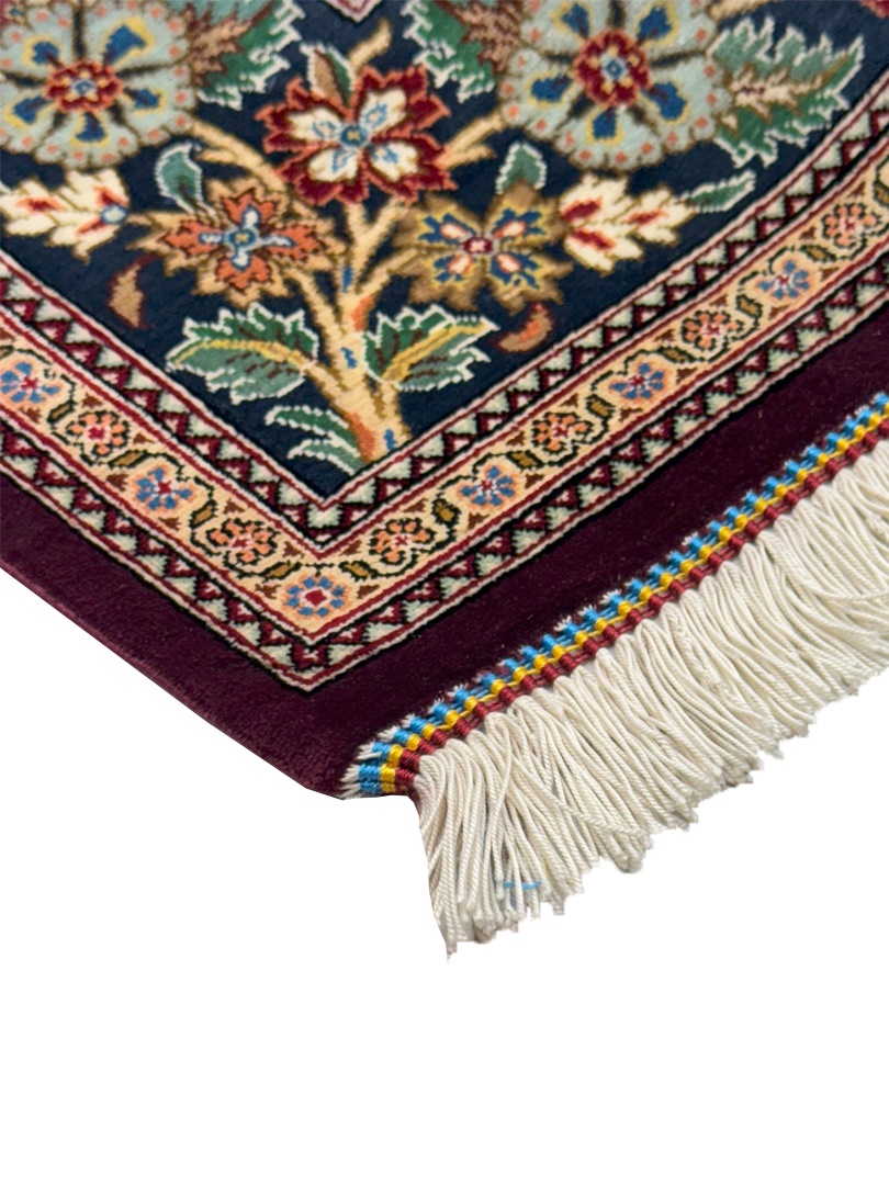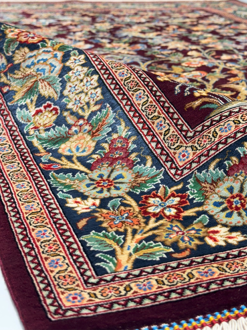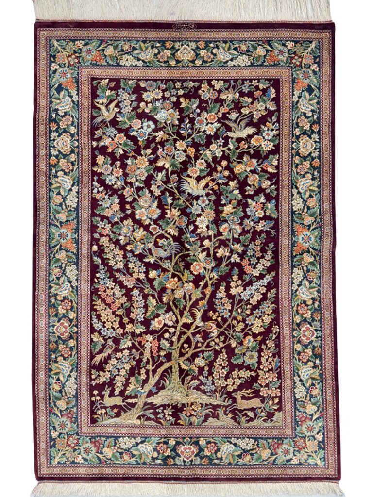 دست بافت قم 100*150 مستطيل درختي 70 رج تمام ابريشم لاکي سبز 2 Kg