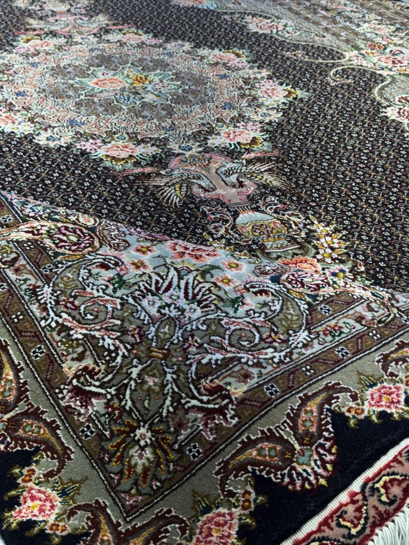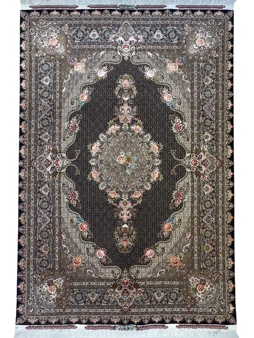 دست بافت تبريز 200*300 مستطيل ريز ماهي گل رز 40 رج تمام ابريشم سورمهاي سورمهاي 25 Kg