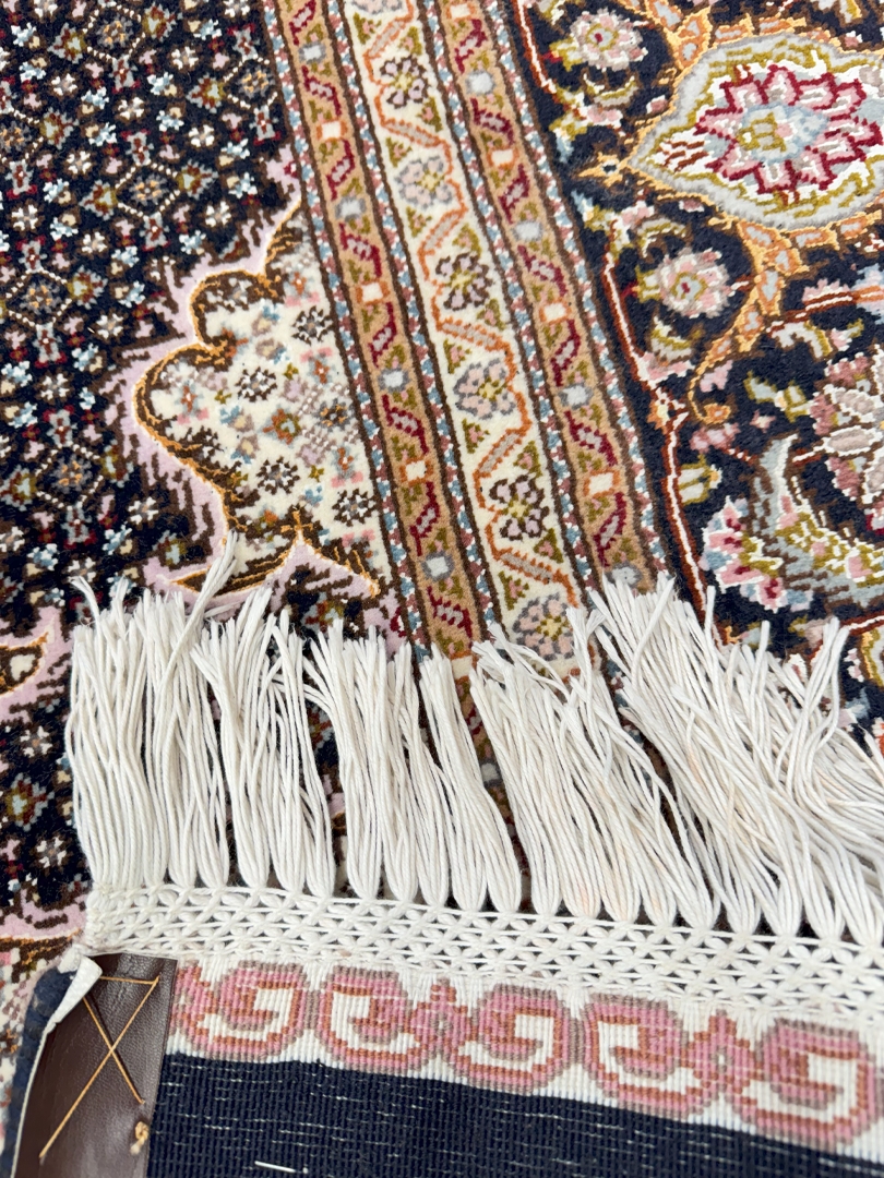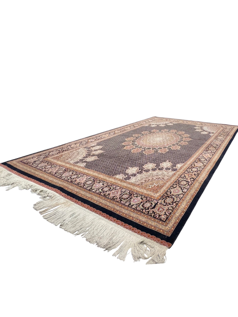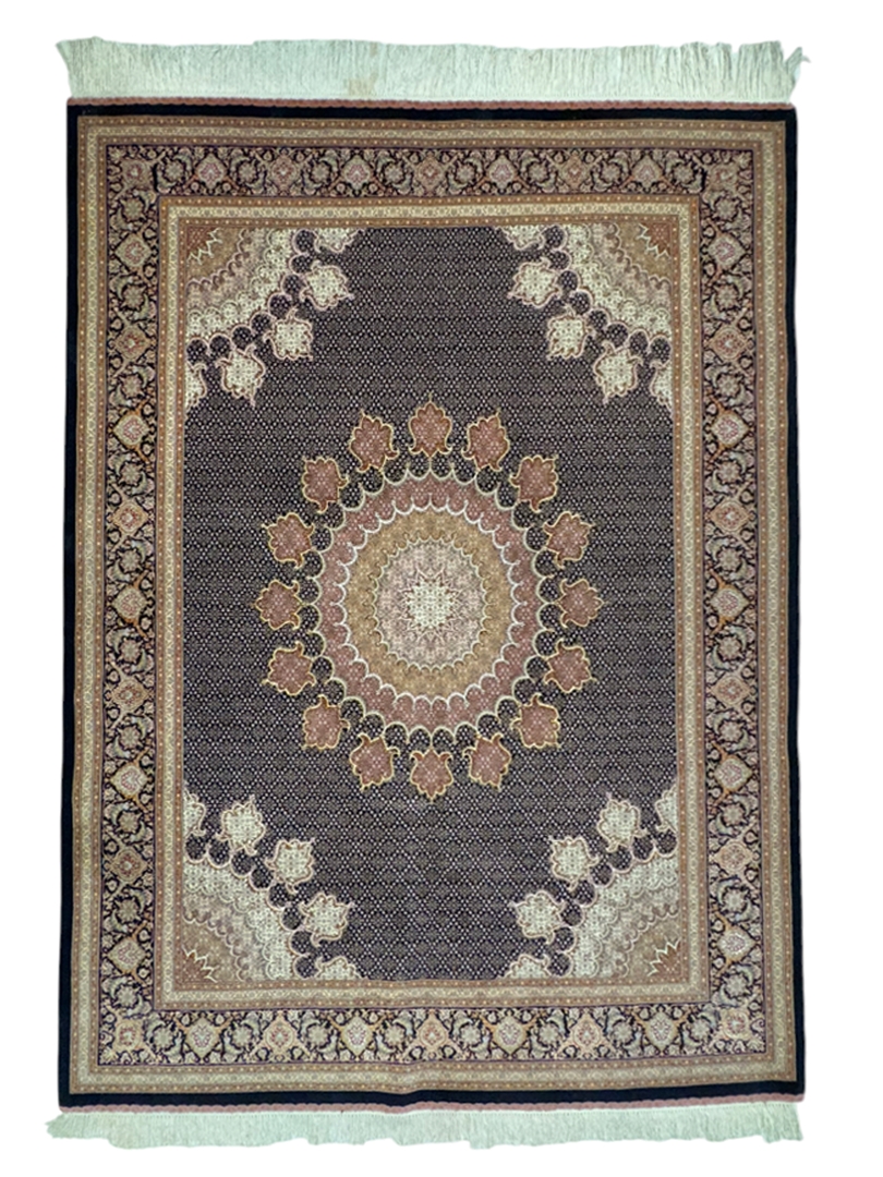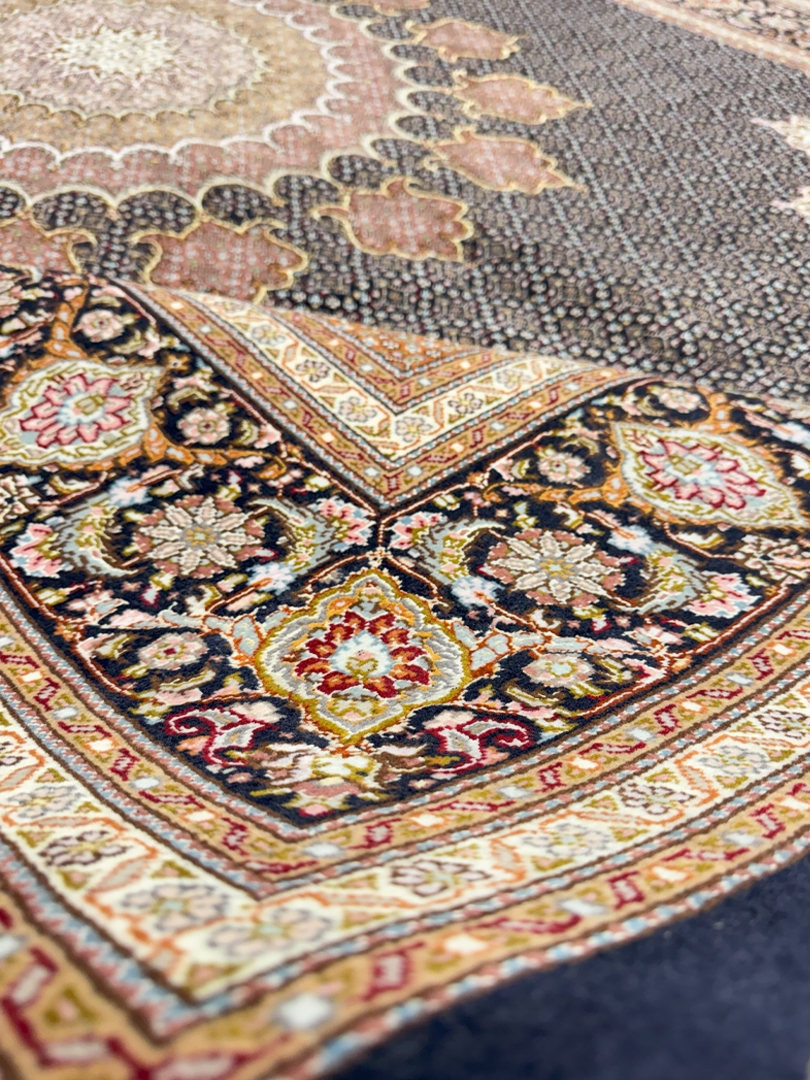 دست بافت تبريز 250*350 مستطيل ريز ماهي 40 رج کرک و ابريشم سورمهاي سورمهاي 20 Kg