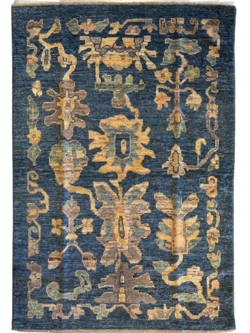 دست بافت سلطان اباد 130*200 مستطيل سلطان آباد 20 رج پشم طبيعي آبي درباري 4 Kg