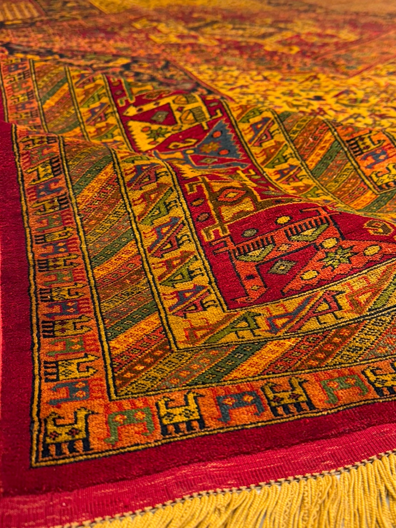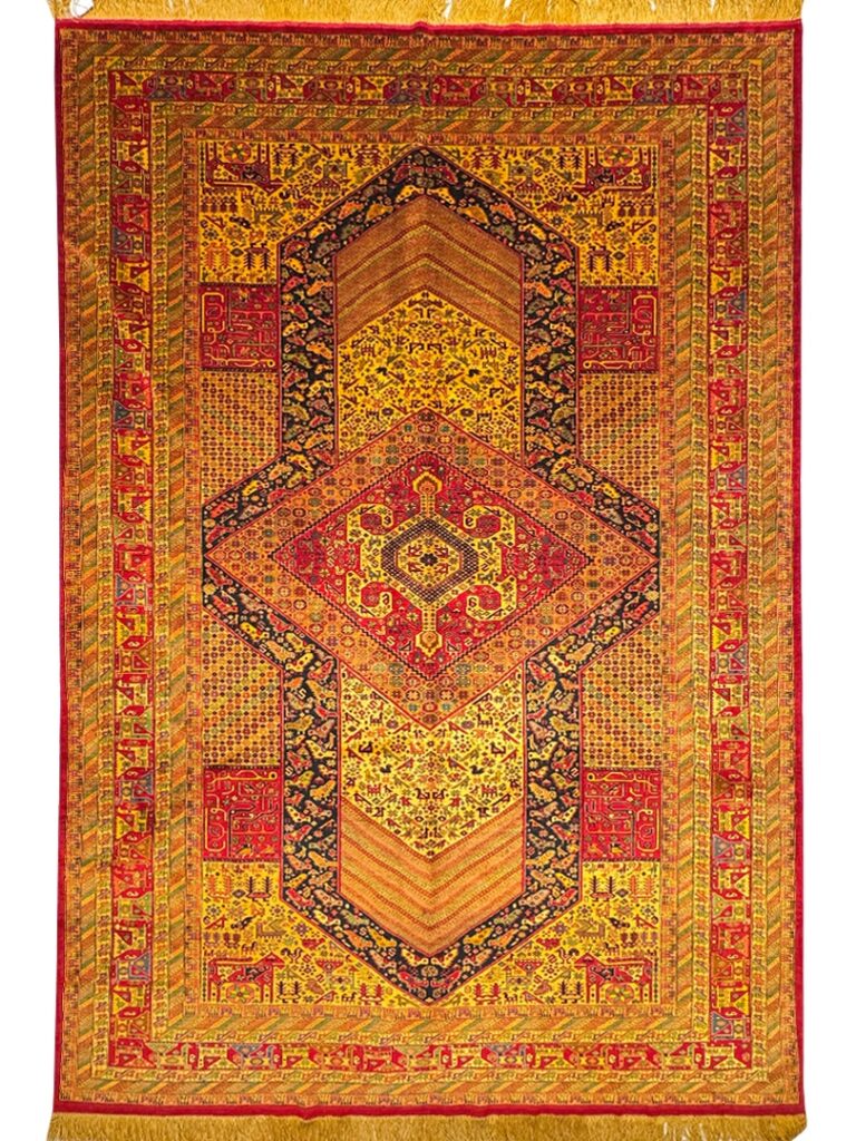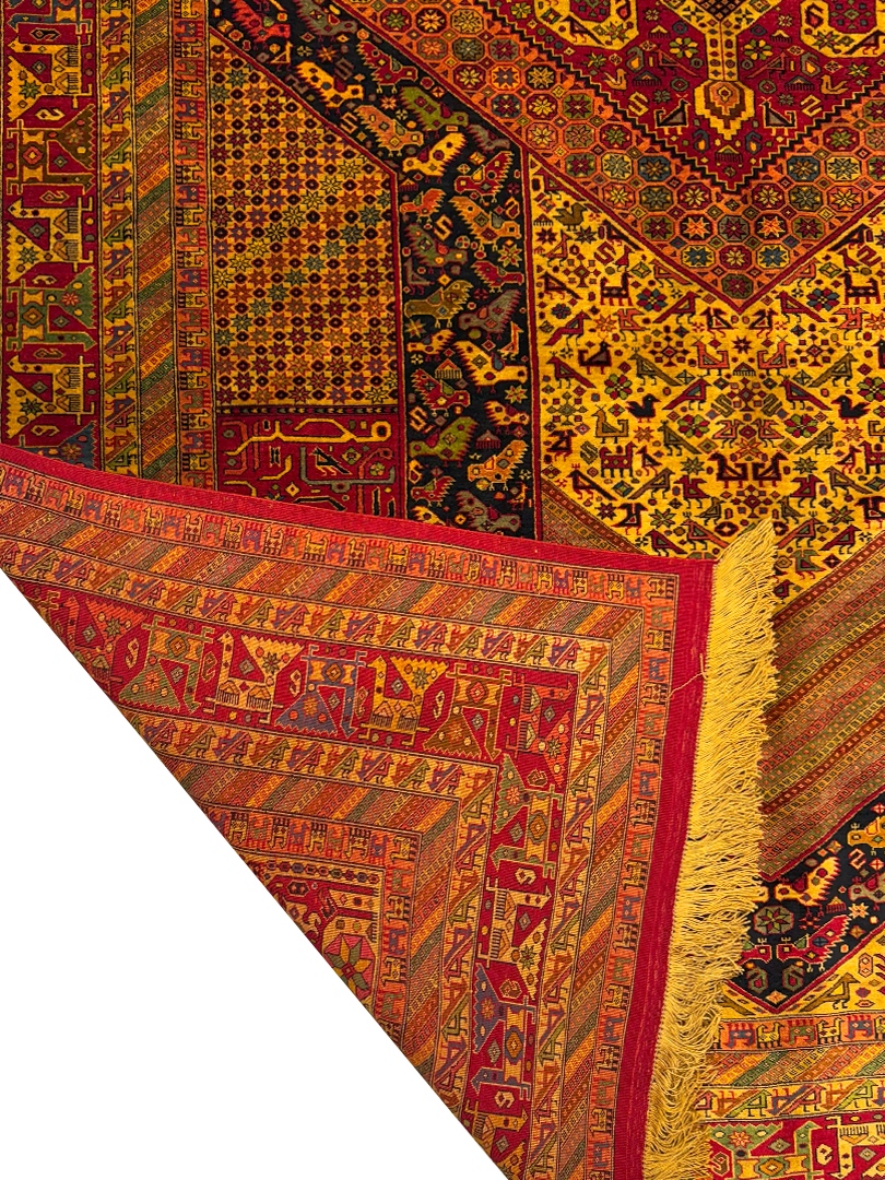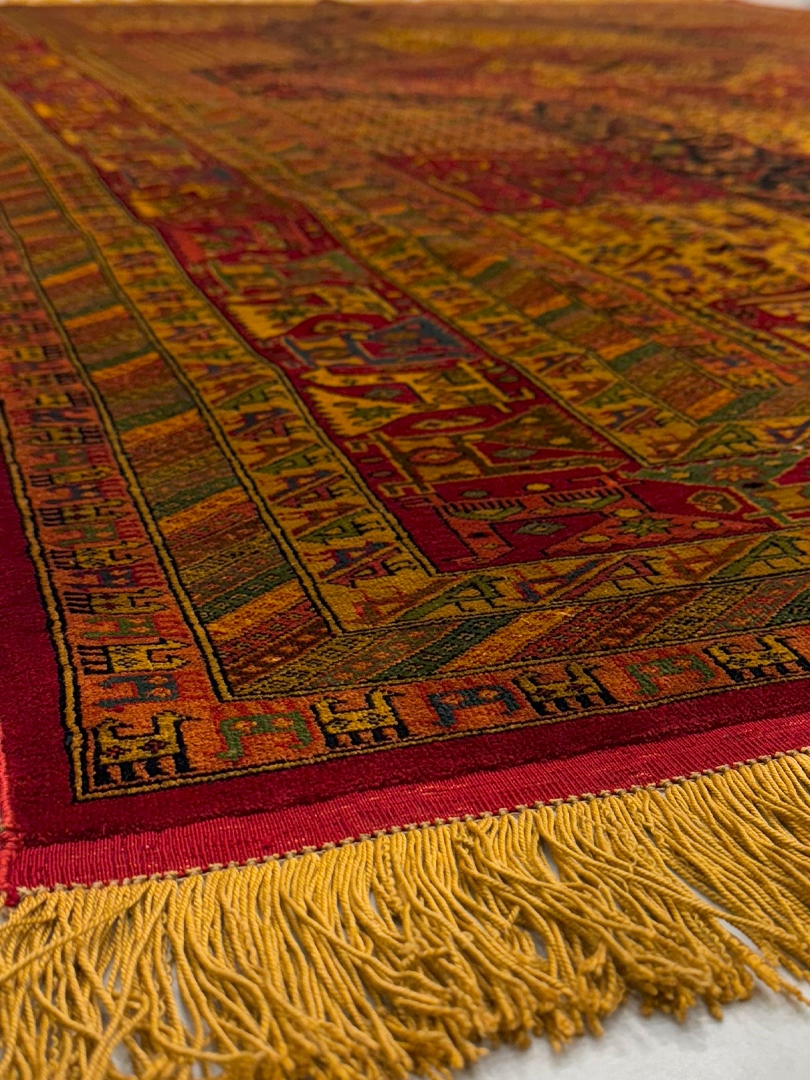 دست بافت قشقايي 200*300 مستطيل قشقايي 70 رج تمام ابريشم شرابي شرابي 17 Kg