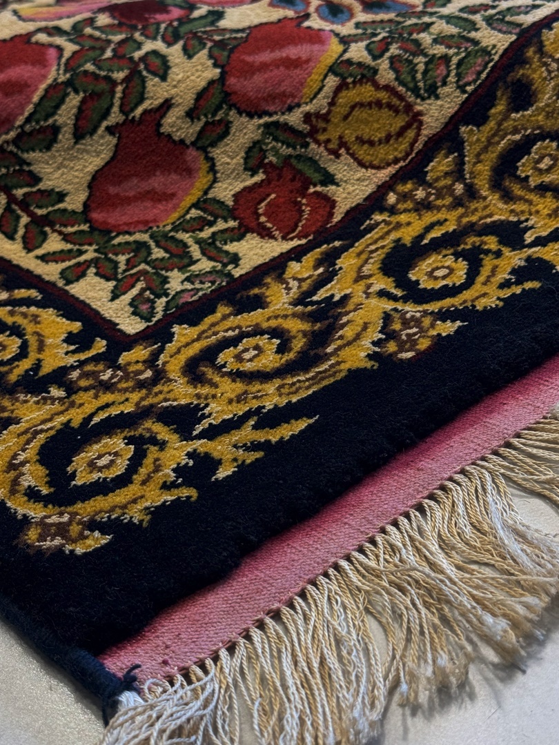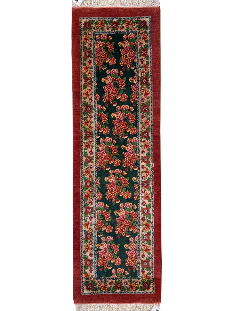 دست بافت قشقايي 280*70 مستطيل هزار گل 40 رج پشم دست ريس سبز قرمز لاکي 8 Kg