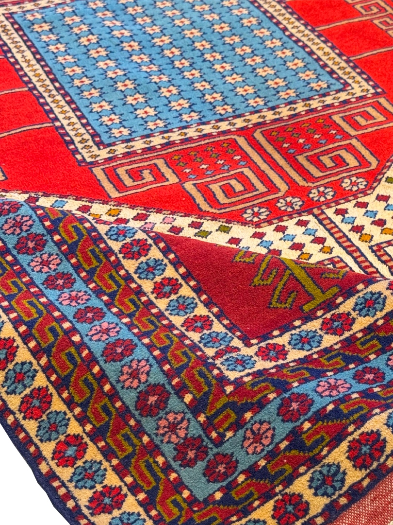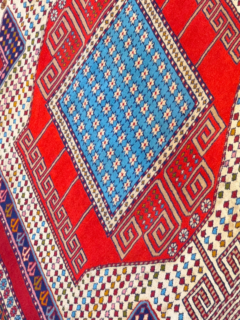 دست بافت قشقايي 130*200 مستطيل کف ساده کرمان 40 رج پشم دست ريس قهوه اي تيره لاکي 8 Kg