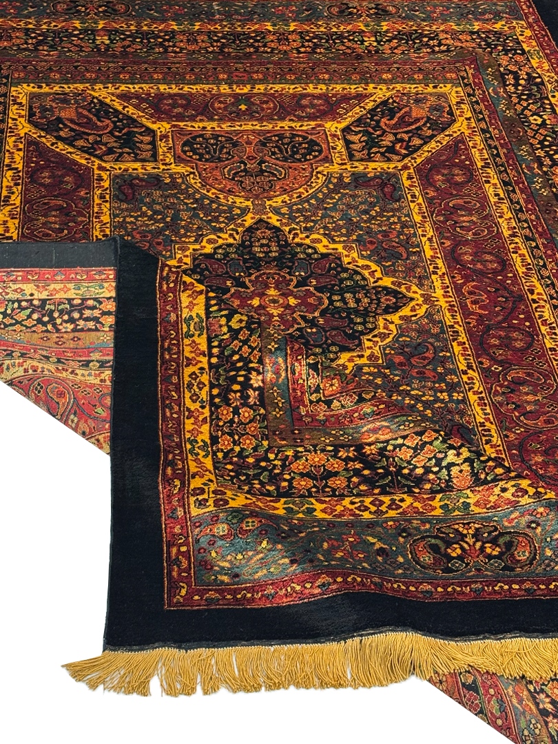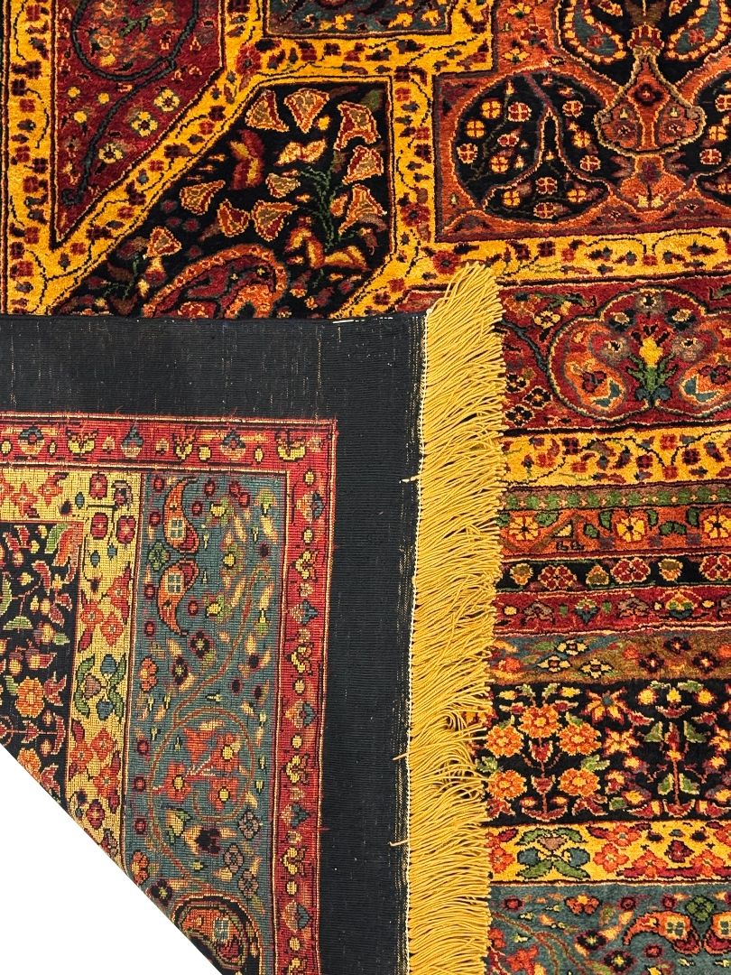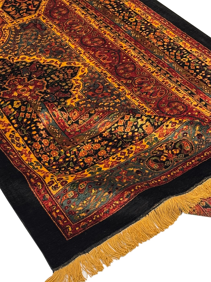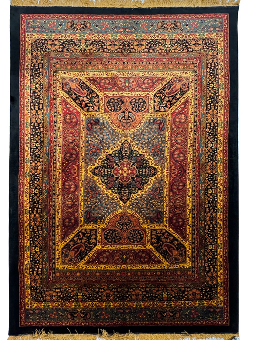 دست بافت خراسان 160*240 مستطيل گلابتون 70 رج تمام ابريشم الوان مشکي 7 Kg