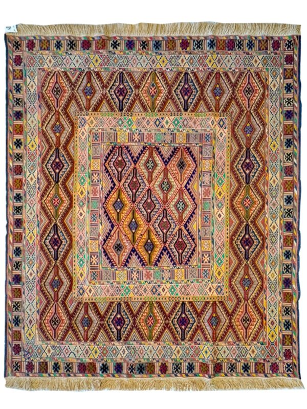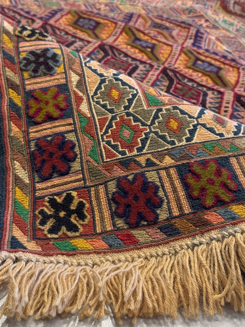 دست بافت خراسان 150*200 مستطيل گليم فرش سوزني 30 رج پشم شتري کرم شتري کرم 7 Kg