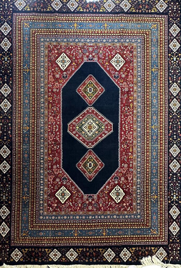 دست بافت قشقايي 250*350 مستطيل مهر گردون 40 پشم دست ريس سبز سورمهاي 35 Kg