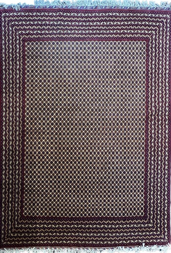 دست بافت خان محمدي 250*350 مستطيل مهر سلاطين 40 کرک مرينوس کرم زرشکي شرابي 35 Kg