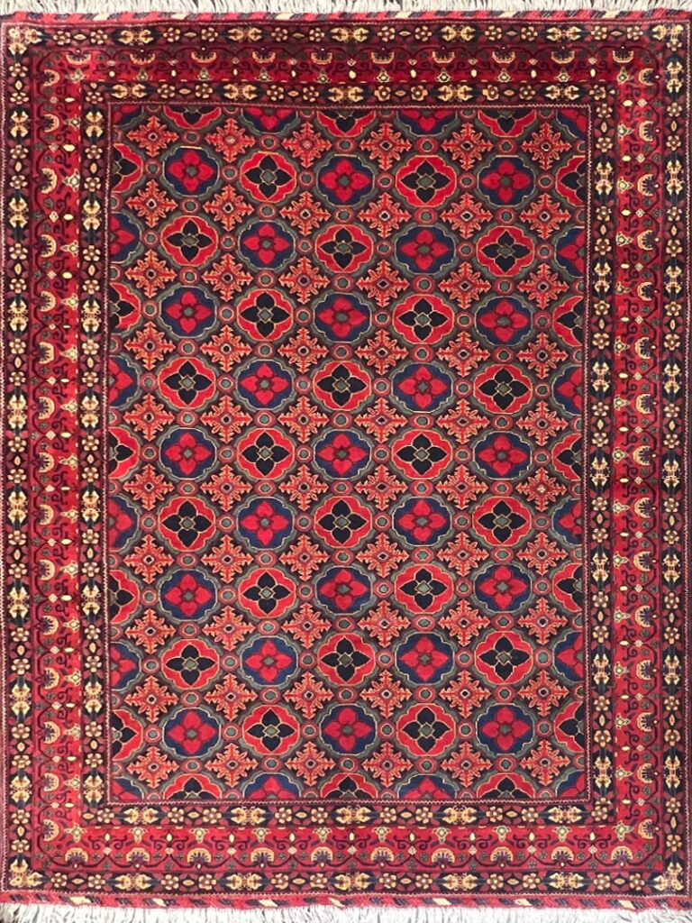 دست بافت خان محمدي 200*300 مستطيل هندسي 40 رج کرک مرينوس لاکي لاکي 18 Kg شادکام