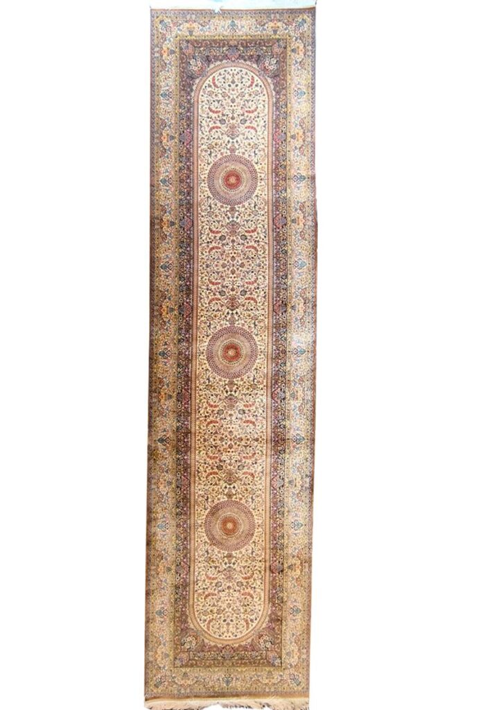 ربات بافت قم 100*400 مستطيل اسليمي 70 رج ابريشم و بنبوسيلک کرم کرم و طلايي 12 Kg پورصدقي
