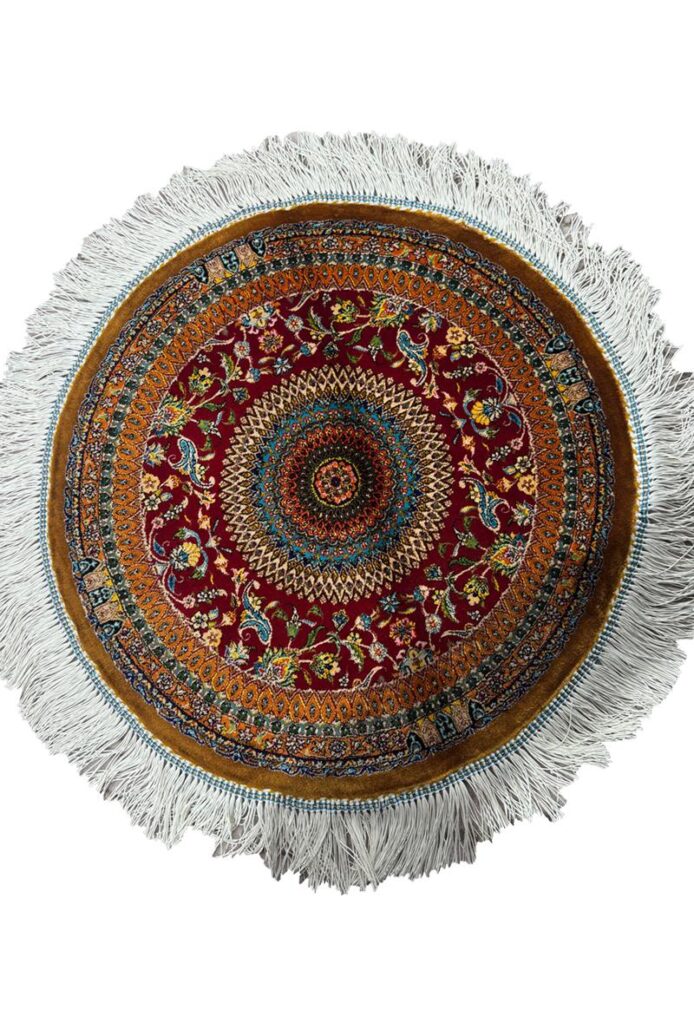 ربات بافت قم 50*50 مستطيل اسليمي 70 رج ابريشم و بنبوسيلک شرابي خردلي Kg 1