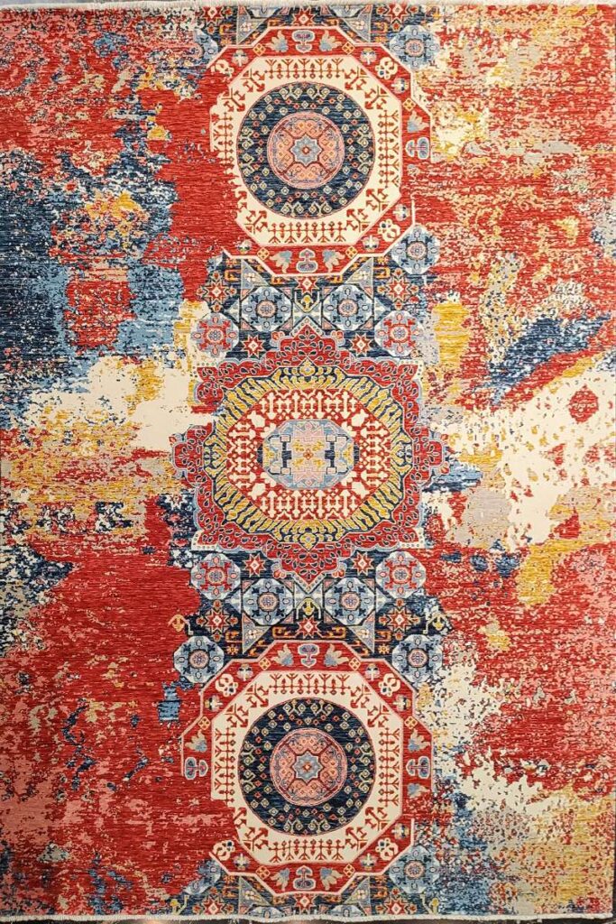 ربات بافت مدرن 200*300 مستطيل ترنج هندسي 40 رج پشم لاکي لاکي 18 Kg