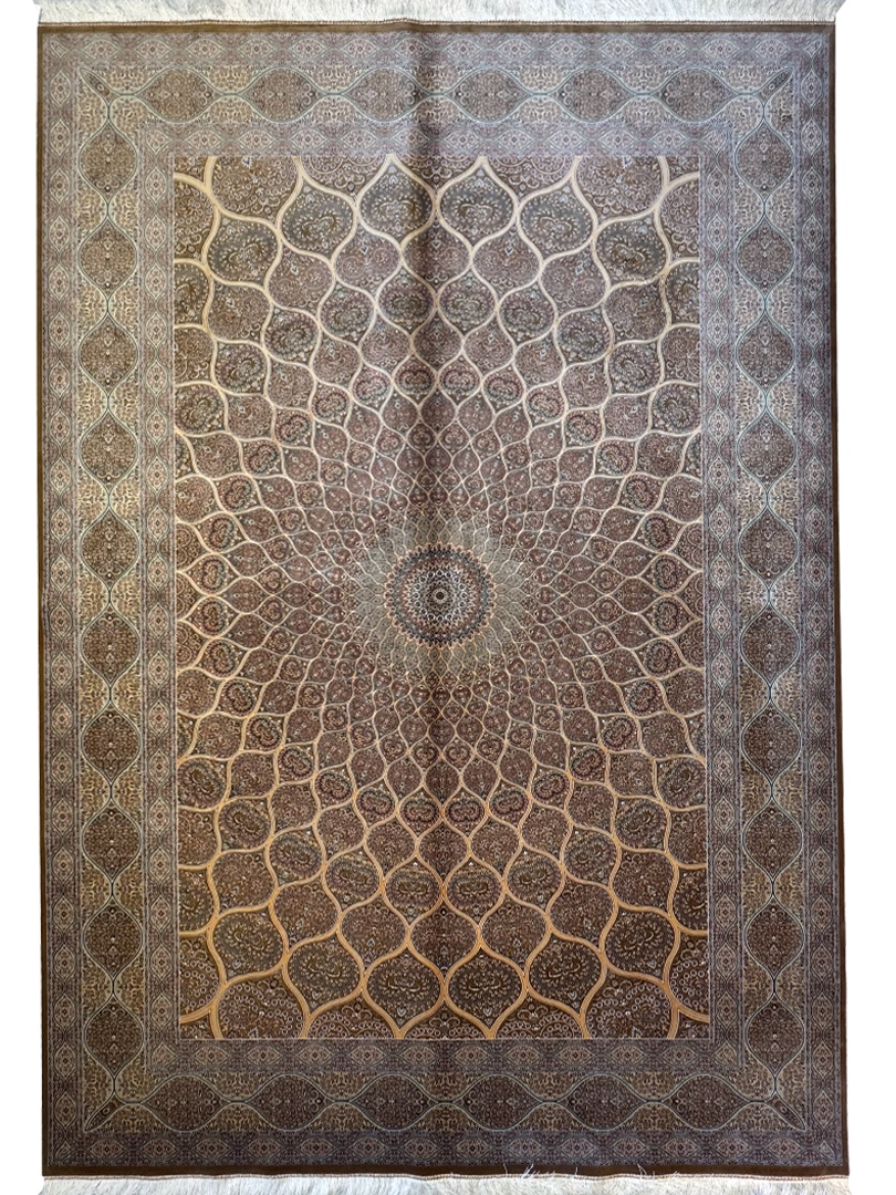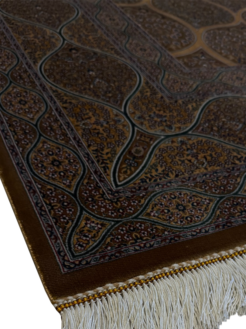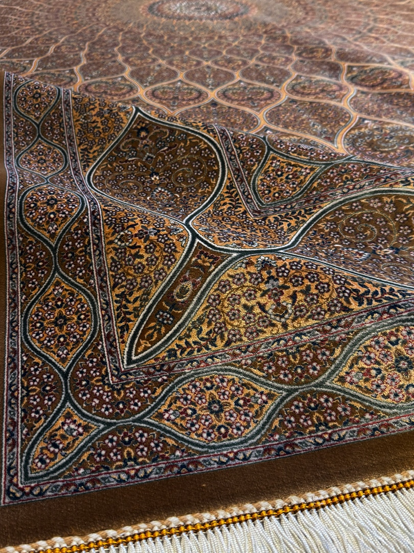 ربات بافت تمام ابريشم 2 نخ 200*300 مستطيل گنبدي موسوي 70 رج کرک و بمبوسيلک نسکافهاي کرم سبز کرم 25 Kg