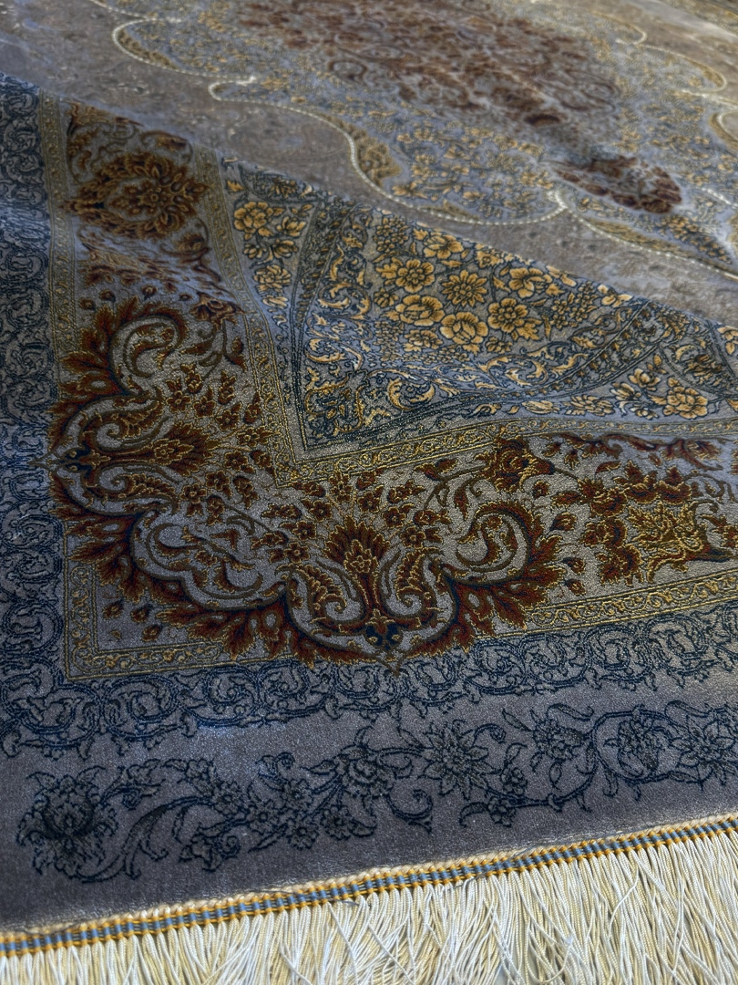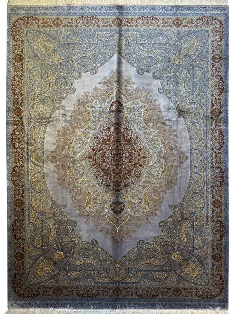 ربات بافت تمام ابريشم 2 نخ 200*300 مستطيل گنبدي موسوي 70 رج کرک و بمبوسيلک نسکافهاي کرم نسکافهاي 25 Kg