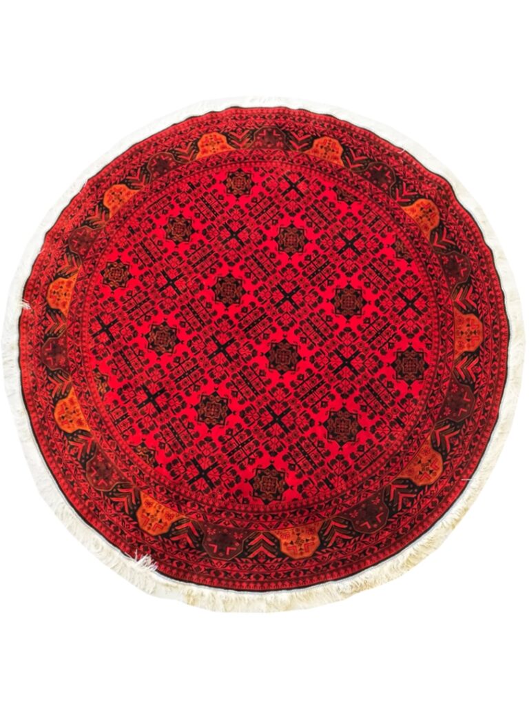 ربات بافت قم 200*200 دايره خان محمدي 70 رج ابريشم و بنبوسيلک لاکي مشکي 5 Kg