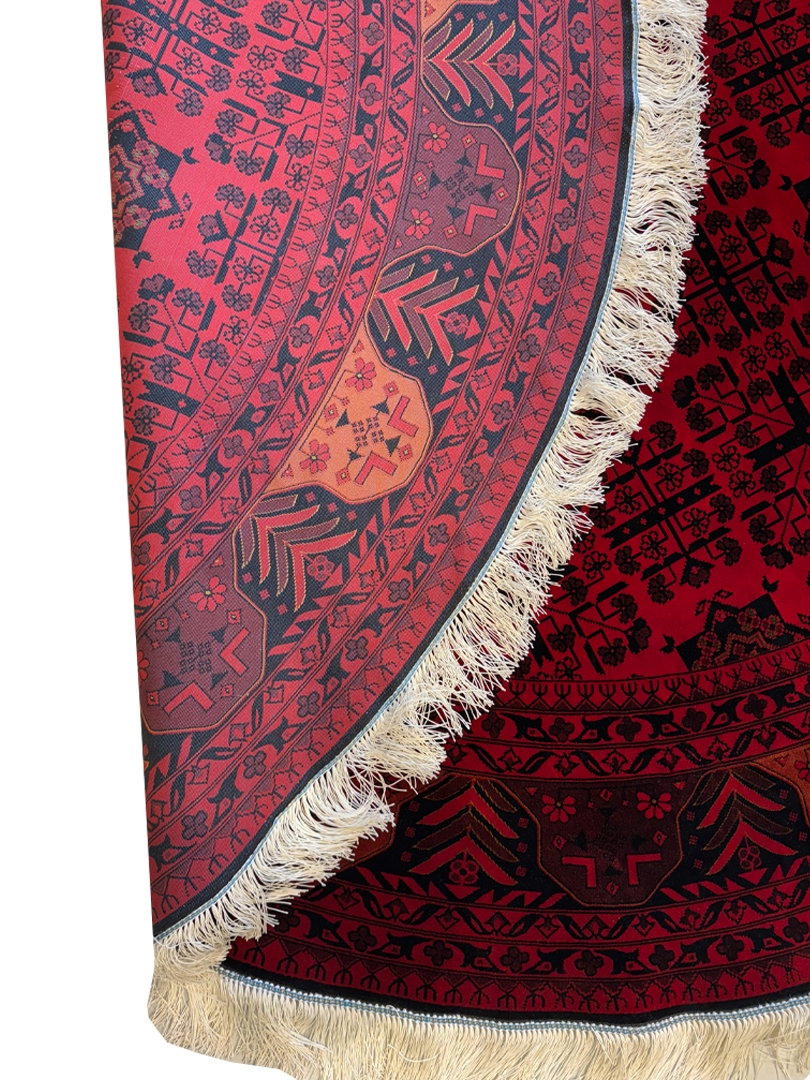 ربات بافت قم 200*200 دايره خان محمدي 70 رج ابريشم و بنبوسيلک لاکي مشکي 5 Kg
