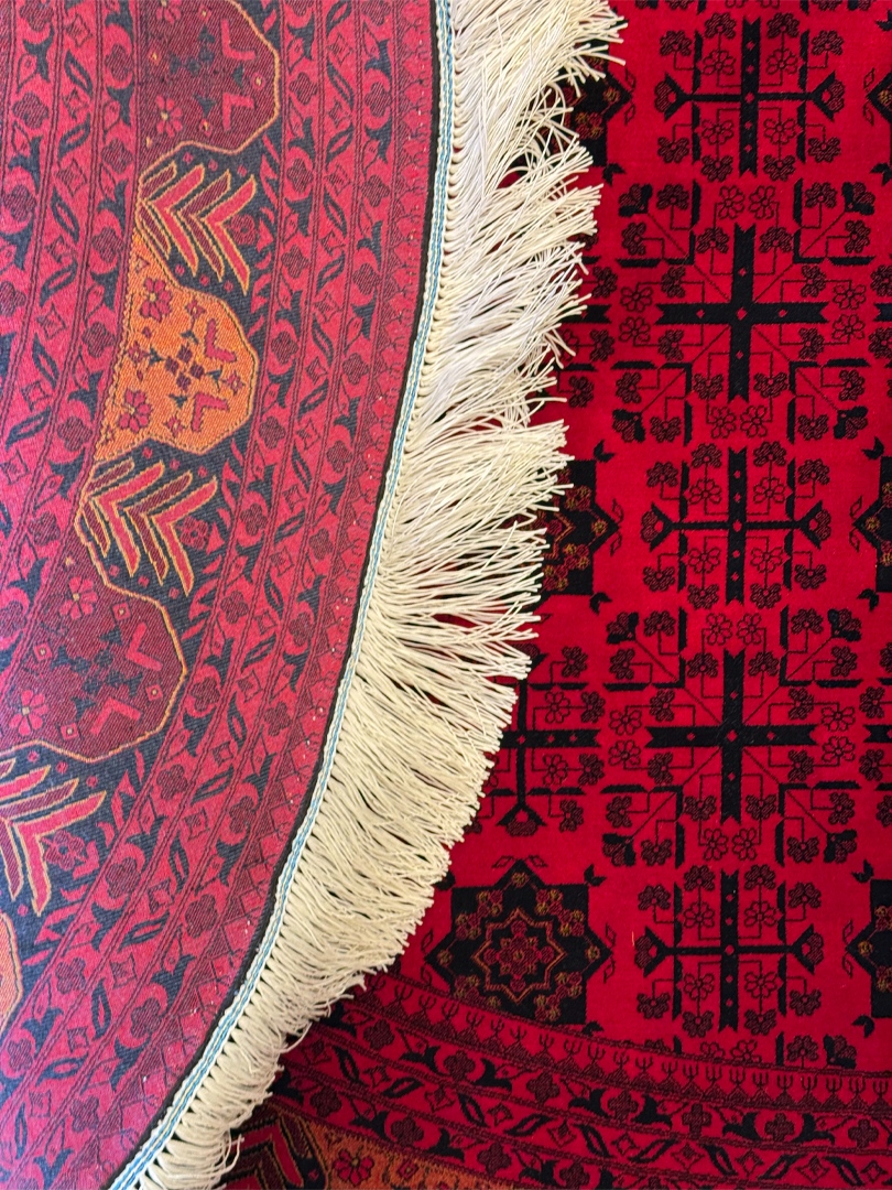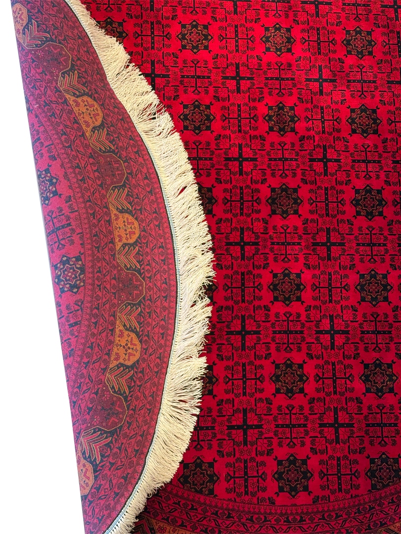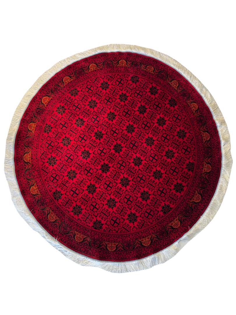 ربات بافت قم 150*150 دايره خان محمدي 70 رج ابريشم و بنبوسيلک لاکي الوان 5 Kg