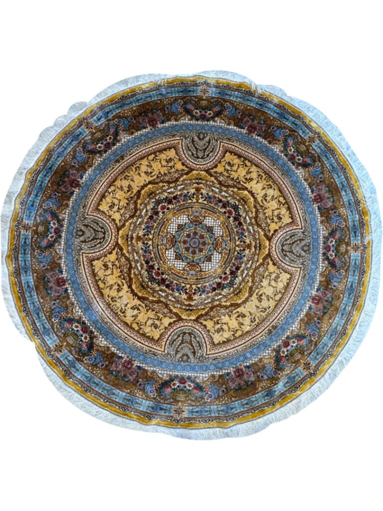 فرش شادکام > فروشگاه > فرش ربات بافت > فرش ربات بافت دایره گلابتون 70 رج ابریشم و بنبوسیلک کد 2004050