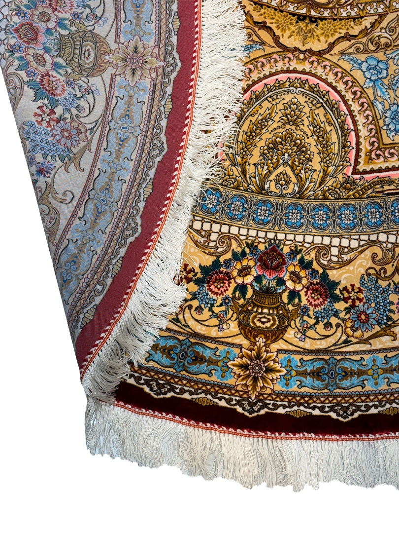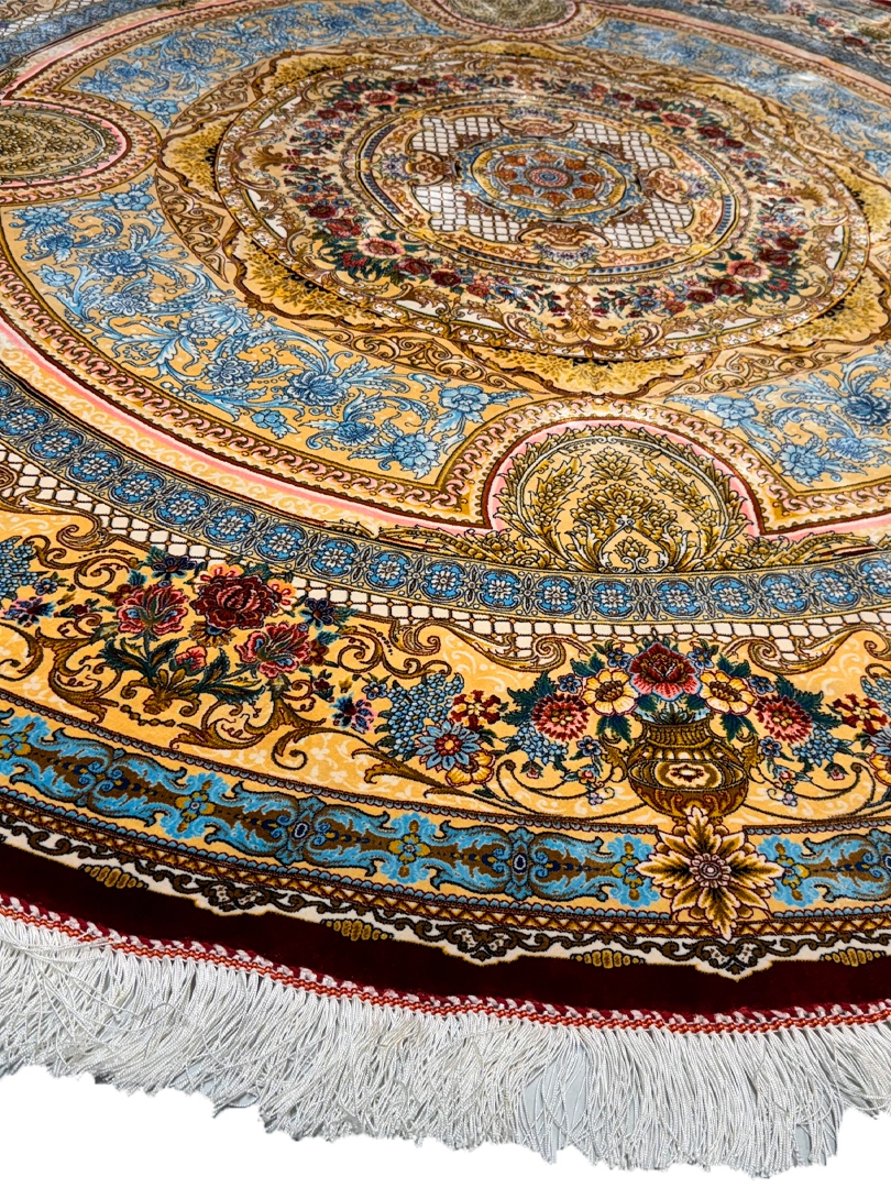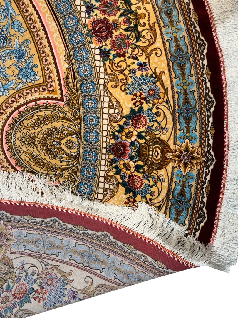 ربات بافت قم 200*200 دايره گلابتون 70 رج تمام ابريشم کرم کرم 17 Kg