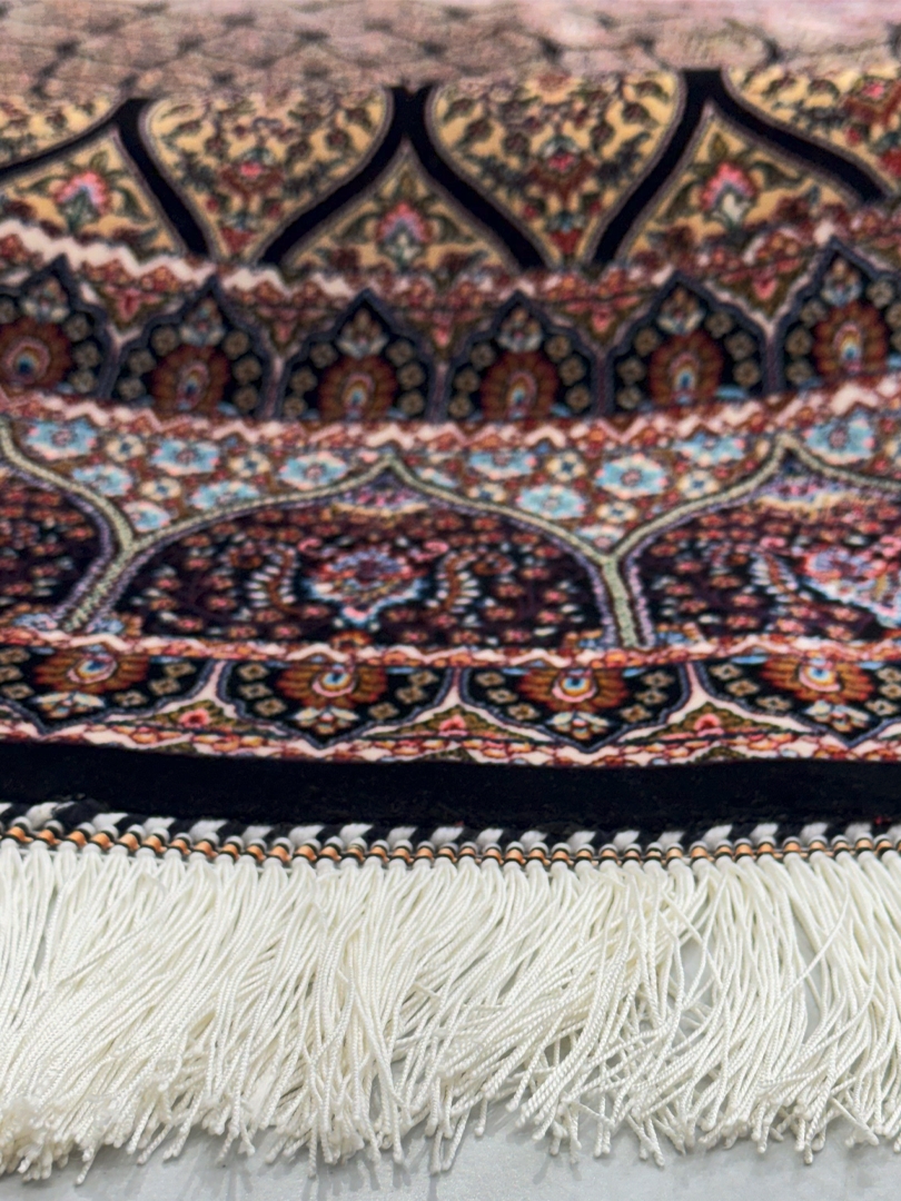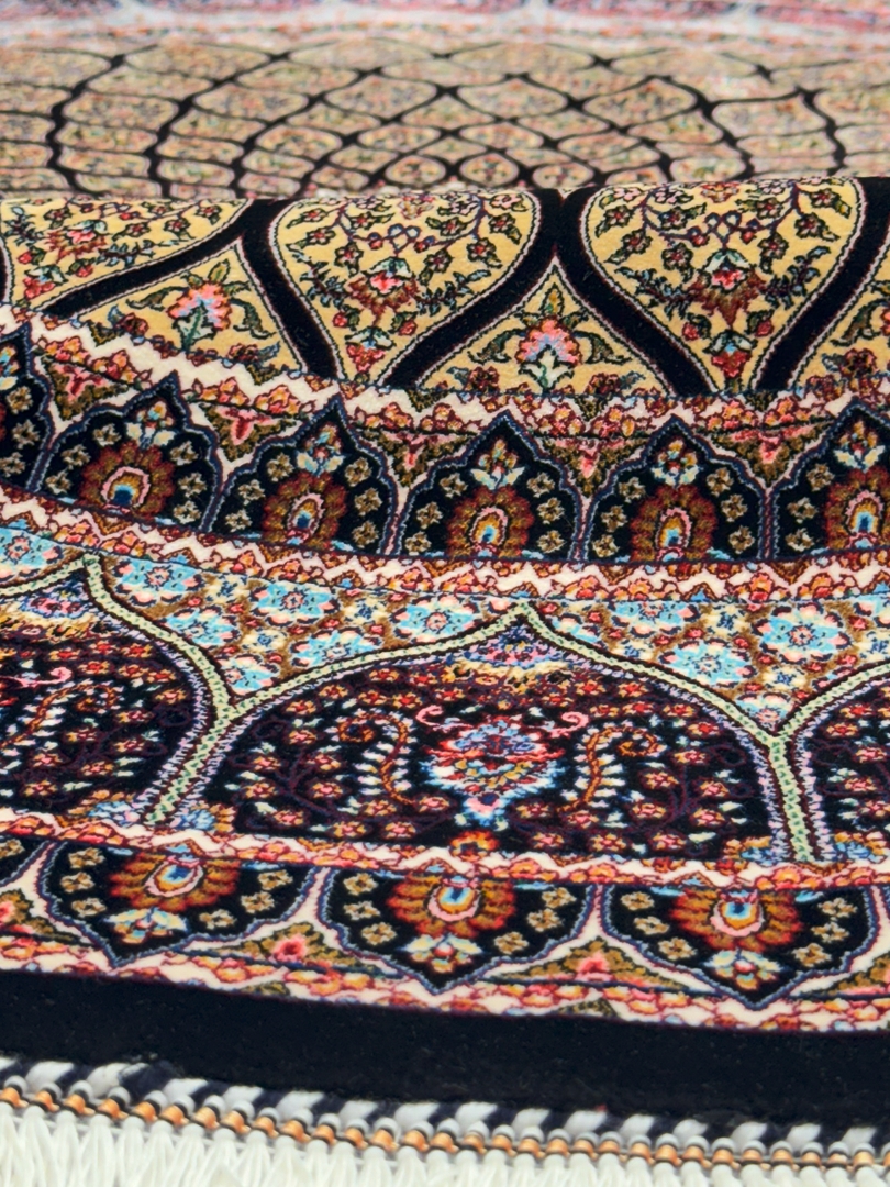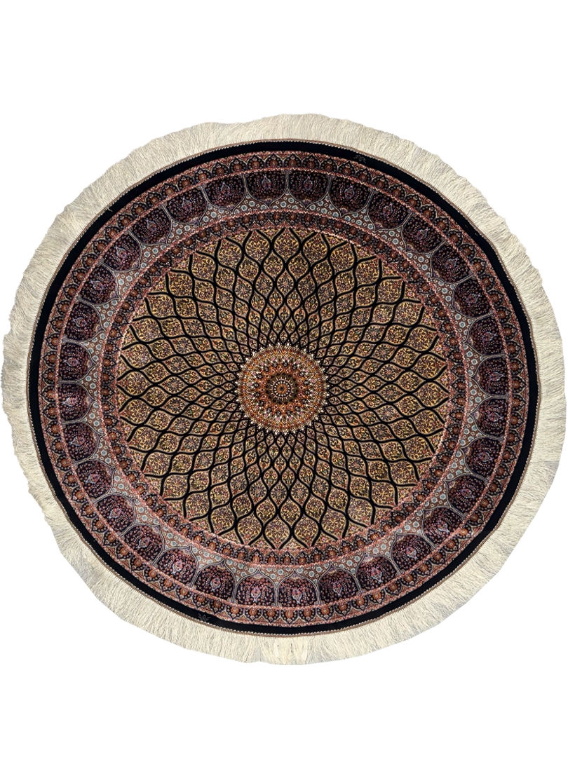 ربات بافت قم 150*150 دايره گنبدي 70 رج ابريشم و بنبوسيلک مشکي مشکي 6 Kg