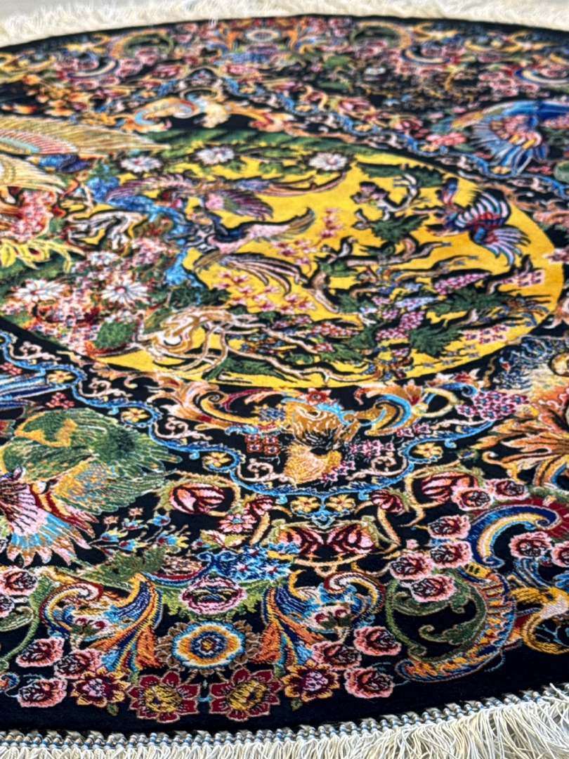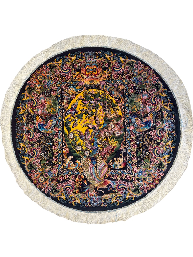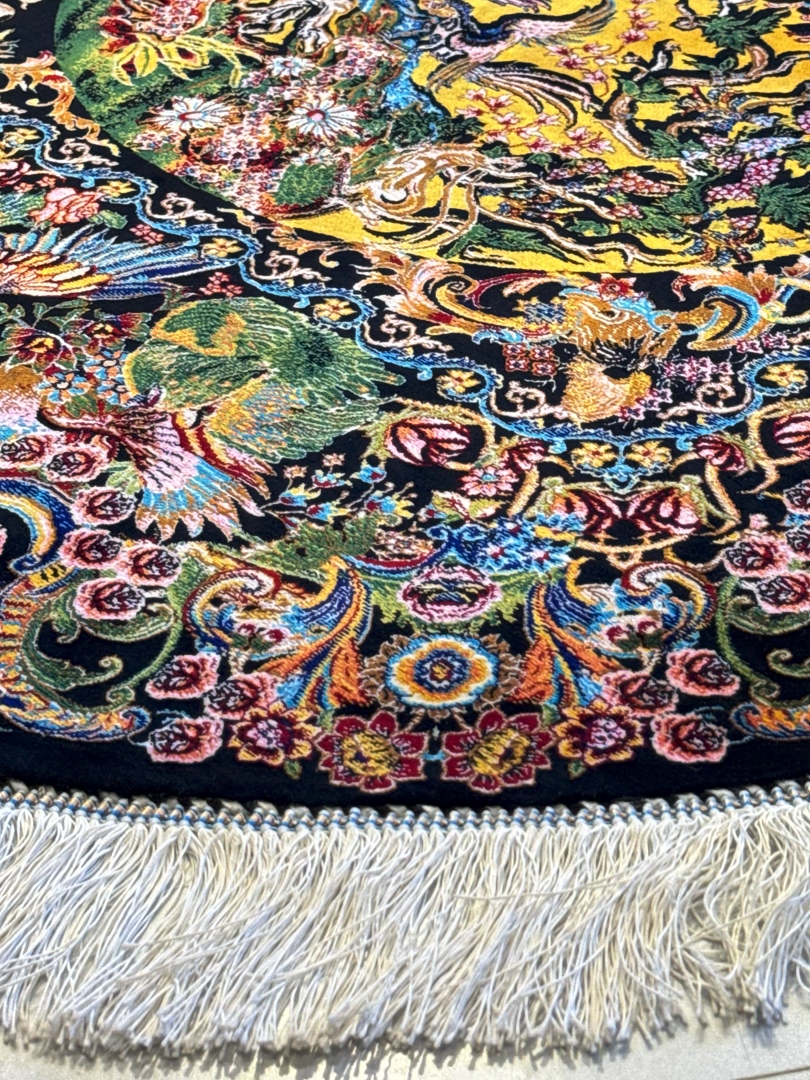 ربات 100*100 دايره ربات 70 ابريشم و بنبوسيلک مشکي الوان