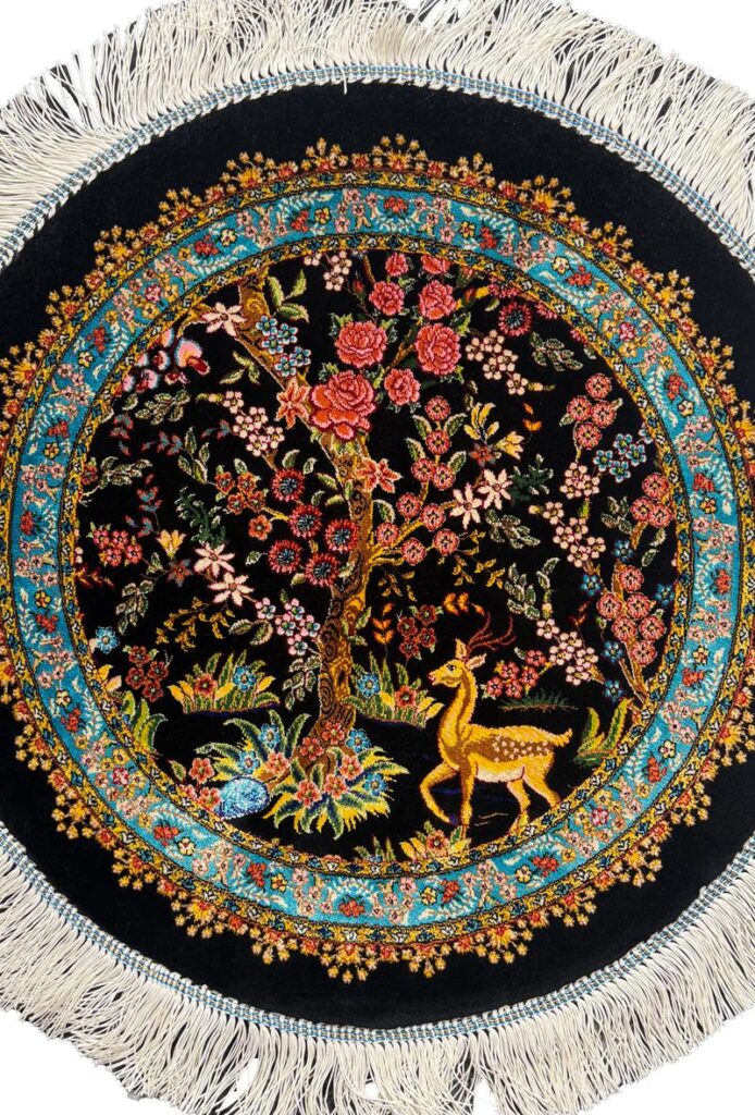 ربات بافت قم 50*50 مستطيل درخت زندگي 70 رج ابريشم و بنبوسيلک مشکي مشکي Kg 1