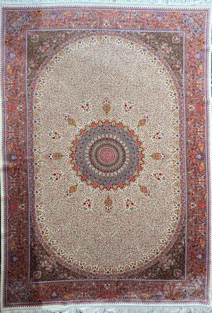 ربات بافت قم 200*300 مستطيل ذبيهي گلزيز 70 رج پشم و بنبوسيلک کرم کرم 3 Kg