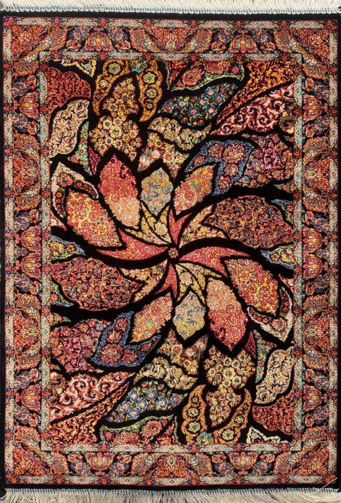 ربات بافت قم 60 * 90 مستطيل رايمون 70 رج ابريشم و بنبوسيلک مشکي الوان مشکي Kg 1