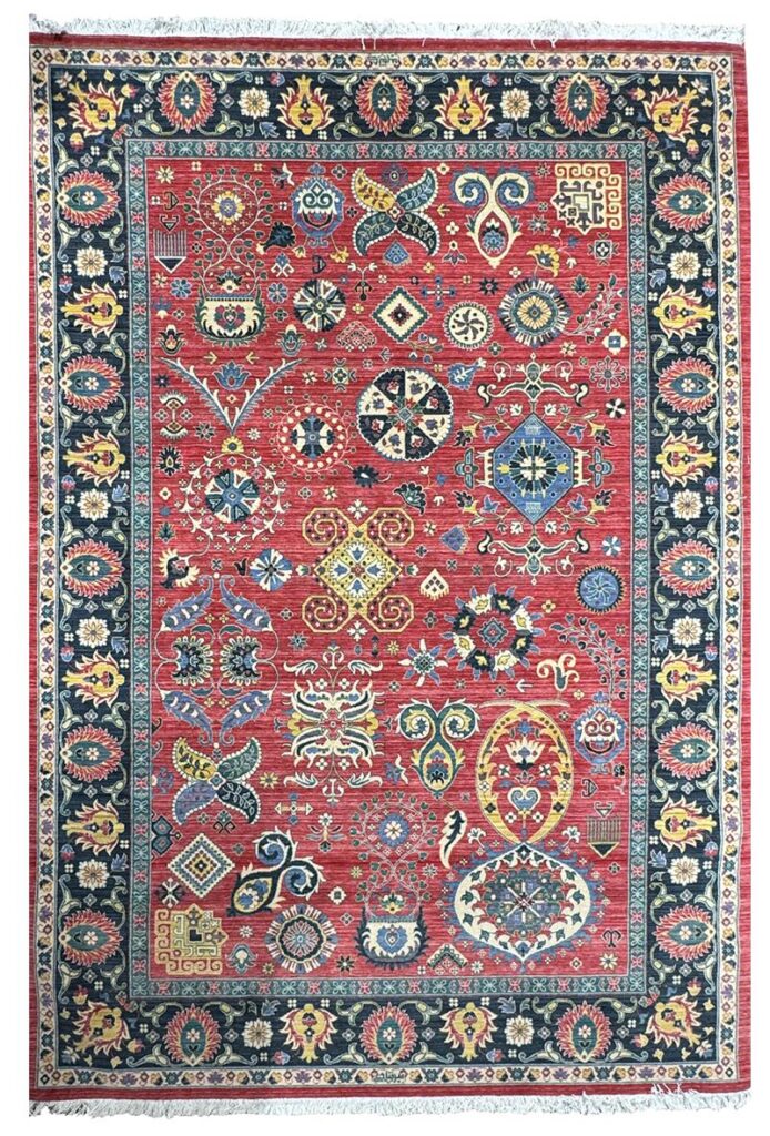 ربات بافت سلطان آباد 200*300 مستطيل سلطان آباد 30 رج پشم دست ريس قرمز لاکي لاکي 25 Kg