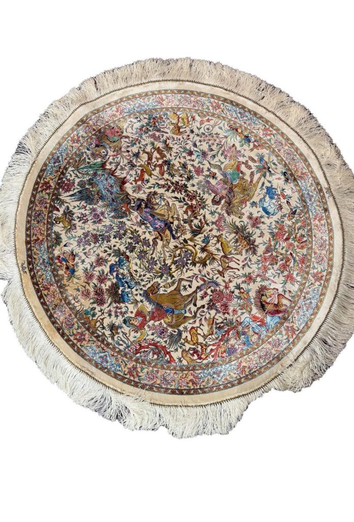 ربات بافت قم 100*100 دايره شکارگاه 70 رج ابريشم و بنبوسيلک کرم و بژ کرم 2 Kg