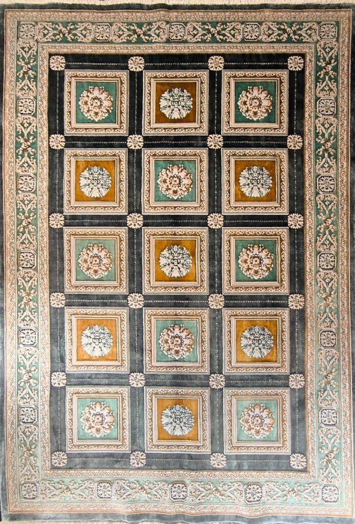 ربات بافت پشم 200*300 مستطيل قابي 30 رج پشم و بنبوسيلک طوسي طلايي فيروزه ايي طوسي 25 Kg
