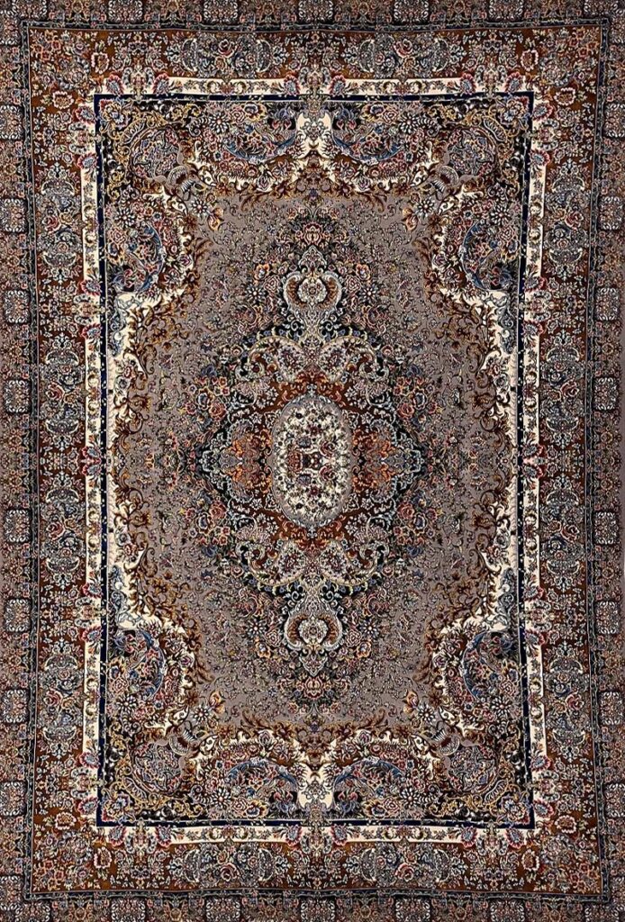 ربات بافت تبريز 200*300 مستطيل لچک ترنجي 70 پشم و بنبوسيلک قهوه‌اي کرم-سرمه اي 25 Kg فرش شادکام