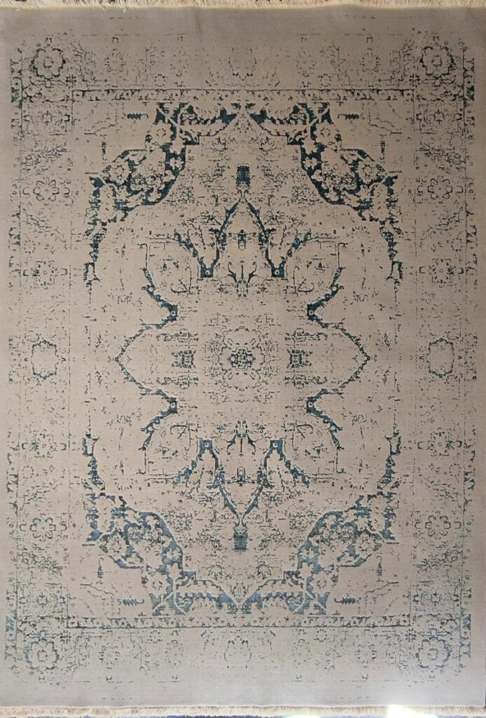 ربات بافت پشم 200*300 مستطيل لچک ترنجي پتينه بافي 30 رج پشم و بنبوسيلک طوسي فيروزهاي طوسي 25 Kg