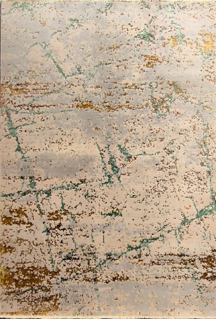 ربات بافت پشم 240*150 مستطيل لچک ترنجي مدرن 30 رج پشم و بنبوسيلک طوسي طلايي فيروزه ايي طوسي 25 Kg