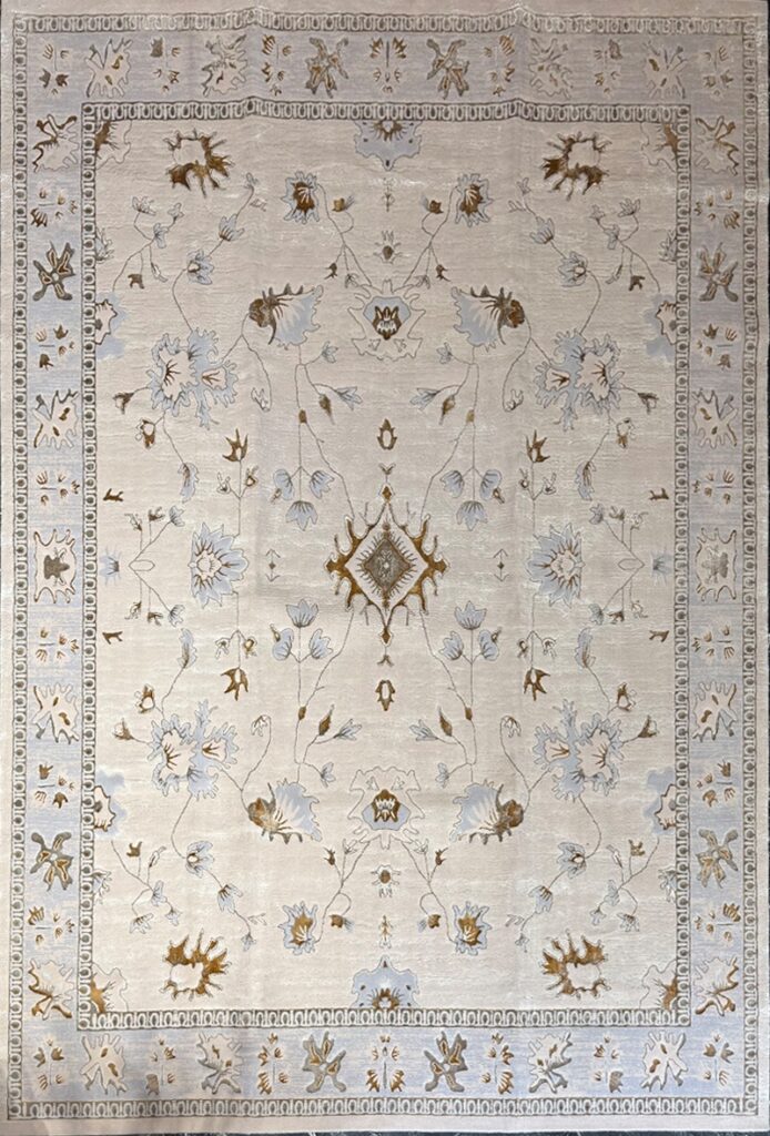 ربات بافت مدرن 250*350 مستطيل پتينه مدرن 40 رج پشم و بنبوسيلک کرم کرم 12 Kg