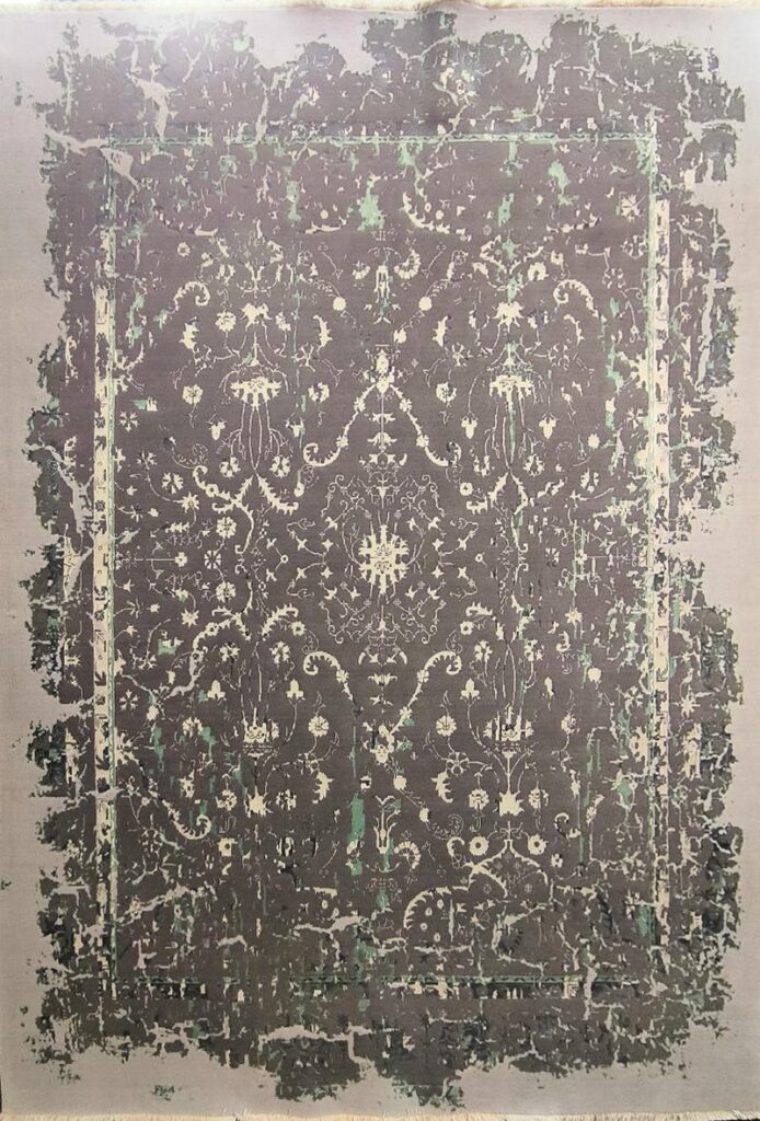 ربات بافت مدرن 200*300 مستطيل مدرن 40 رج پشم طبيعي طوسي سبز و خاکستري 16 Kg