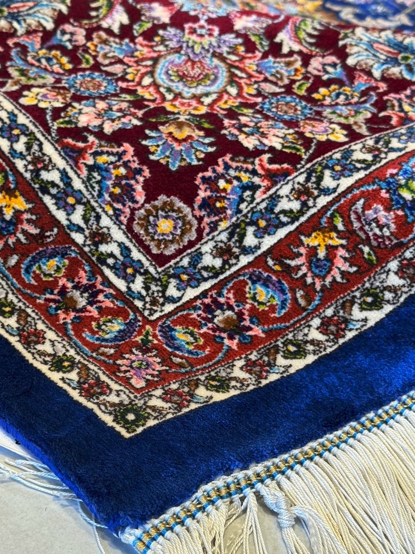 ربات 200*300 مستطيل * افشان 70 پشم و بنبوسيلک آبي سفيد