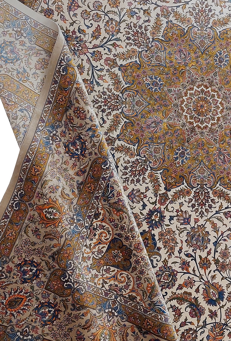 ربات 200*300 مستطيل * افشان 70 ابريشم و بنبوسيلک کرم کرم – قهوهاي