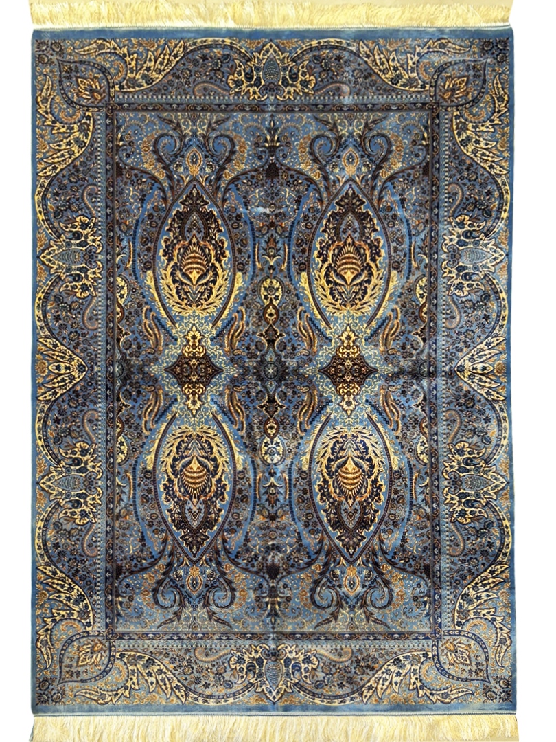 ربات بافت قم 150*225 مستطيل ارمي 70 رج ابريشم و بنبوسيلک سورمهاي سورمهاي 8 Kg