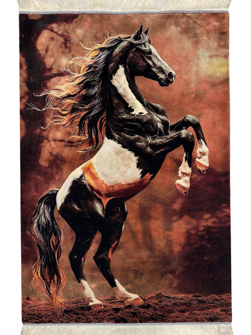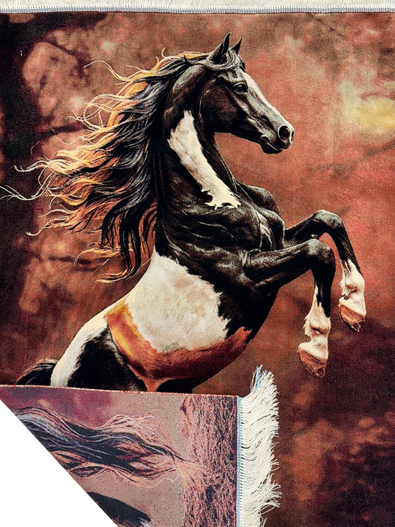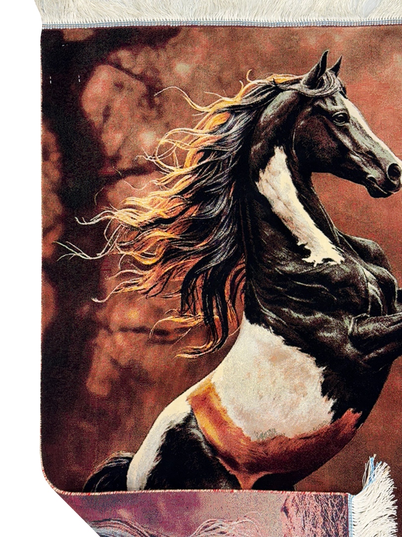 فرش ربات بافت مستطیل اسب 70 رج ابریشم و بنبوسیلک کد 2003914