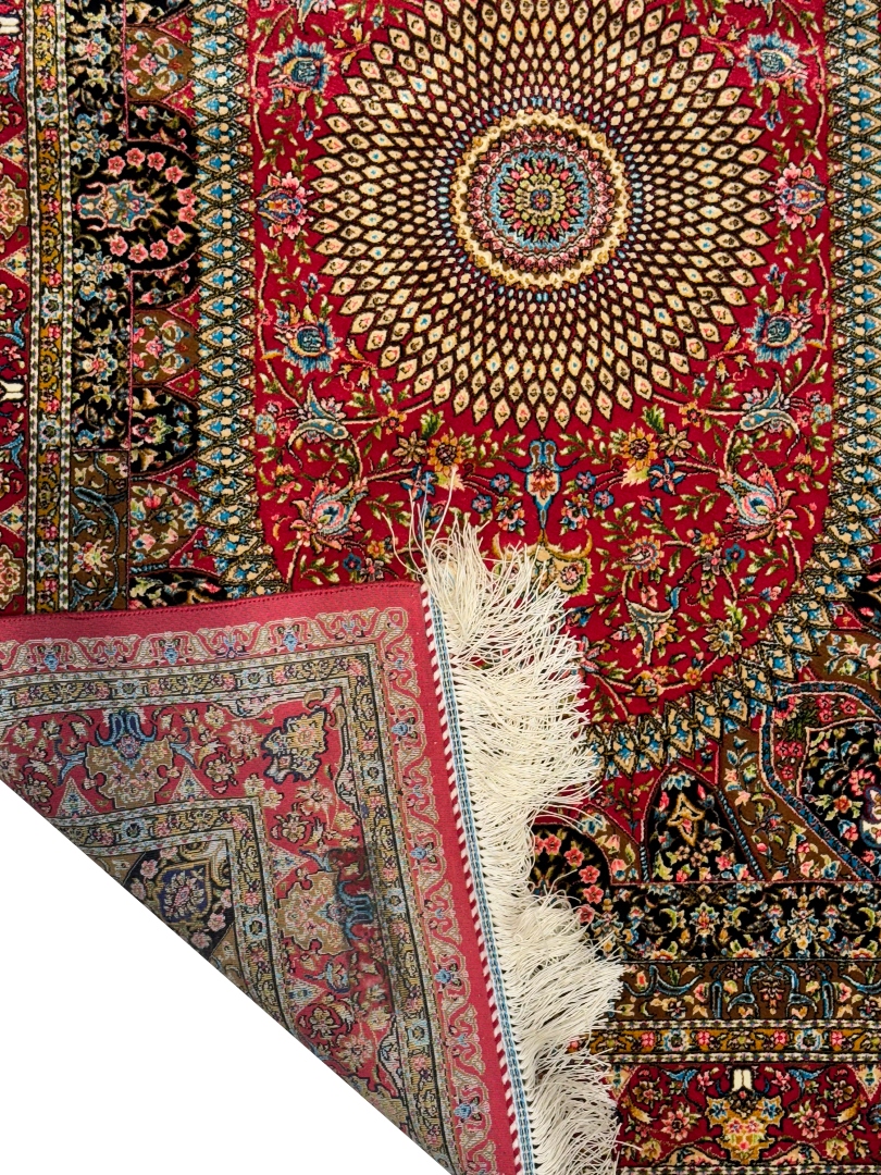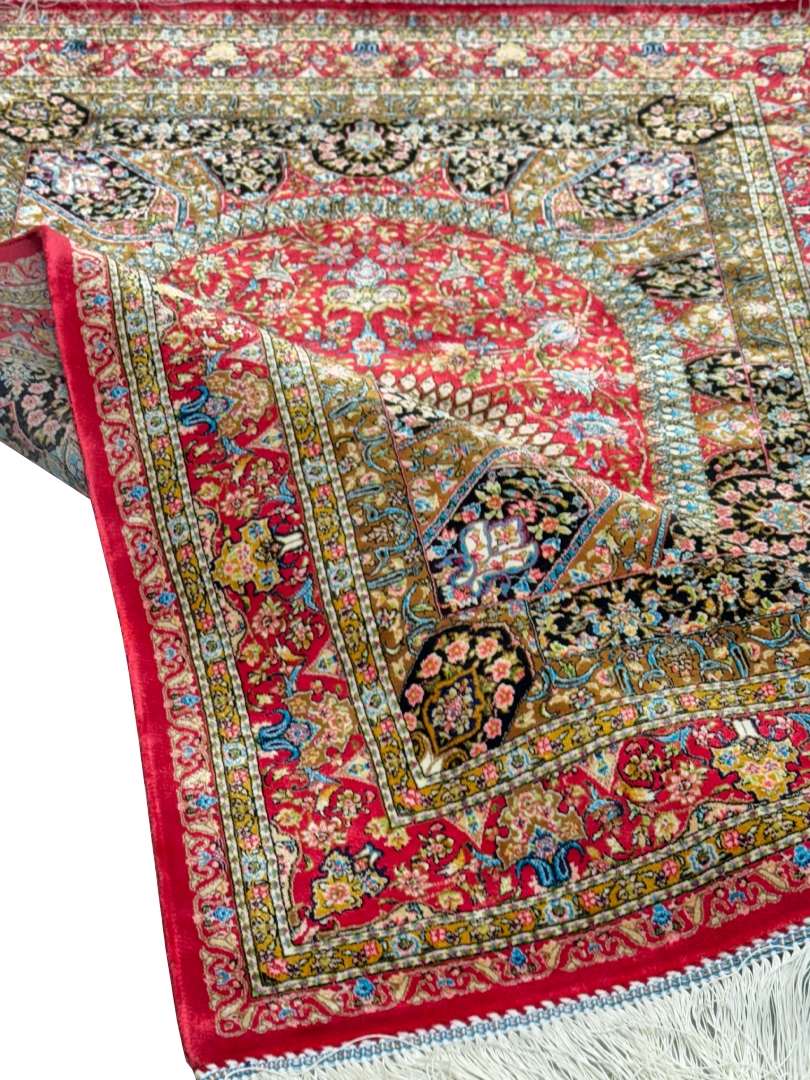 ربات بافت قم 80*120 مستطيل اسليمي 70 رج ابريشم و بنبوسيلک شرابي شرابي 2 Kg