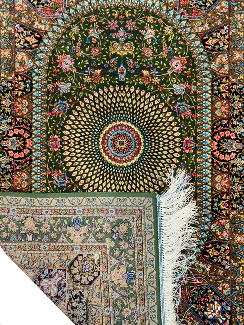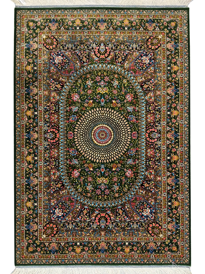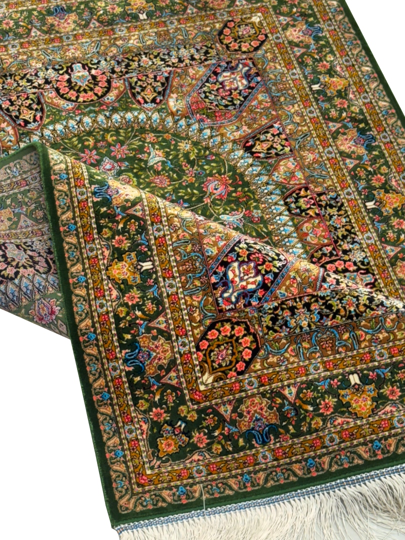 ربات بافت قم 80*120 مستطيل اسليمي 70 رج ابريشم و بنبوسيلک سبز سبز 2 Kg