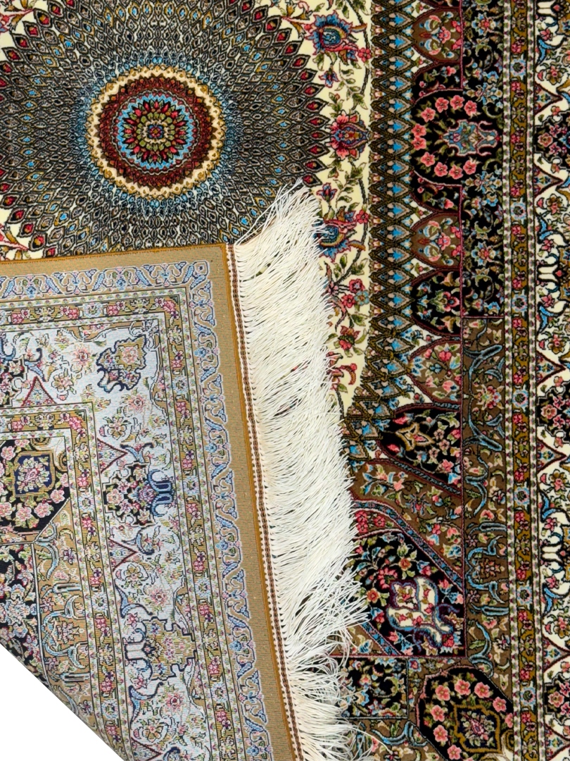 فرش ربات بافت مستطیل اسلیمی 70 رج ابریشم و بنبوسیلک کد 2003688