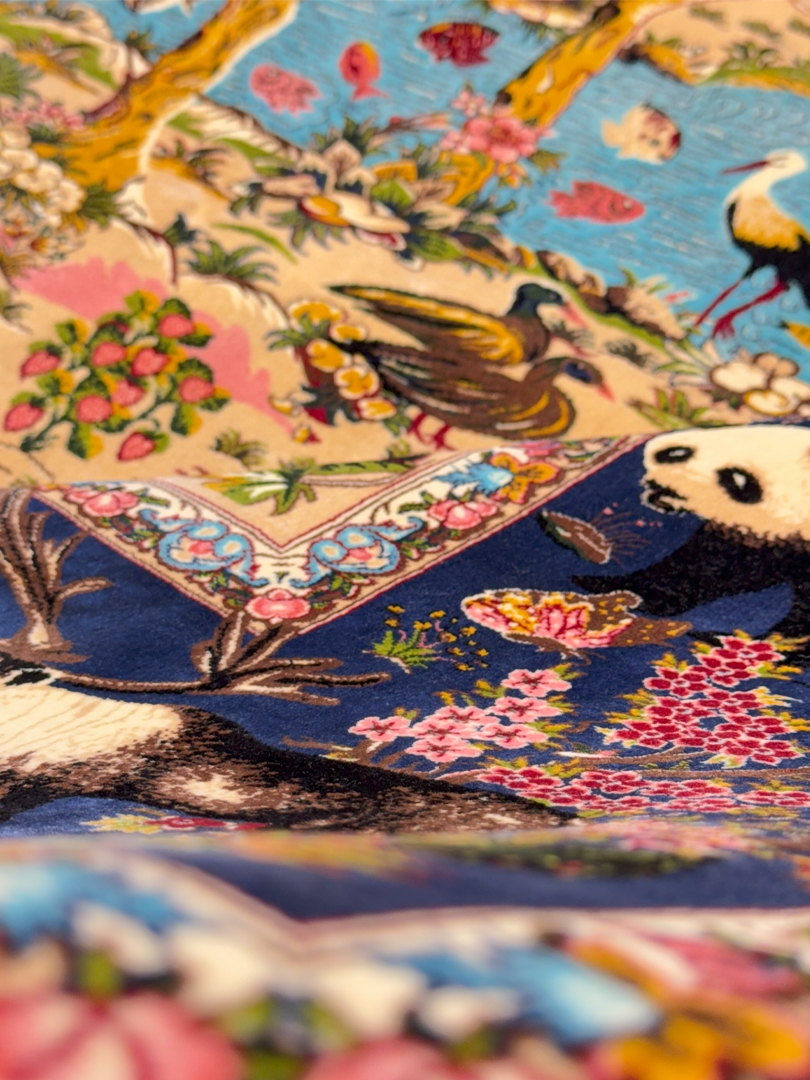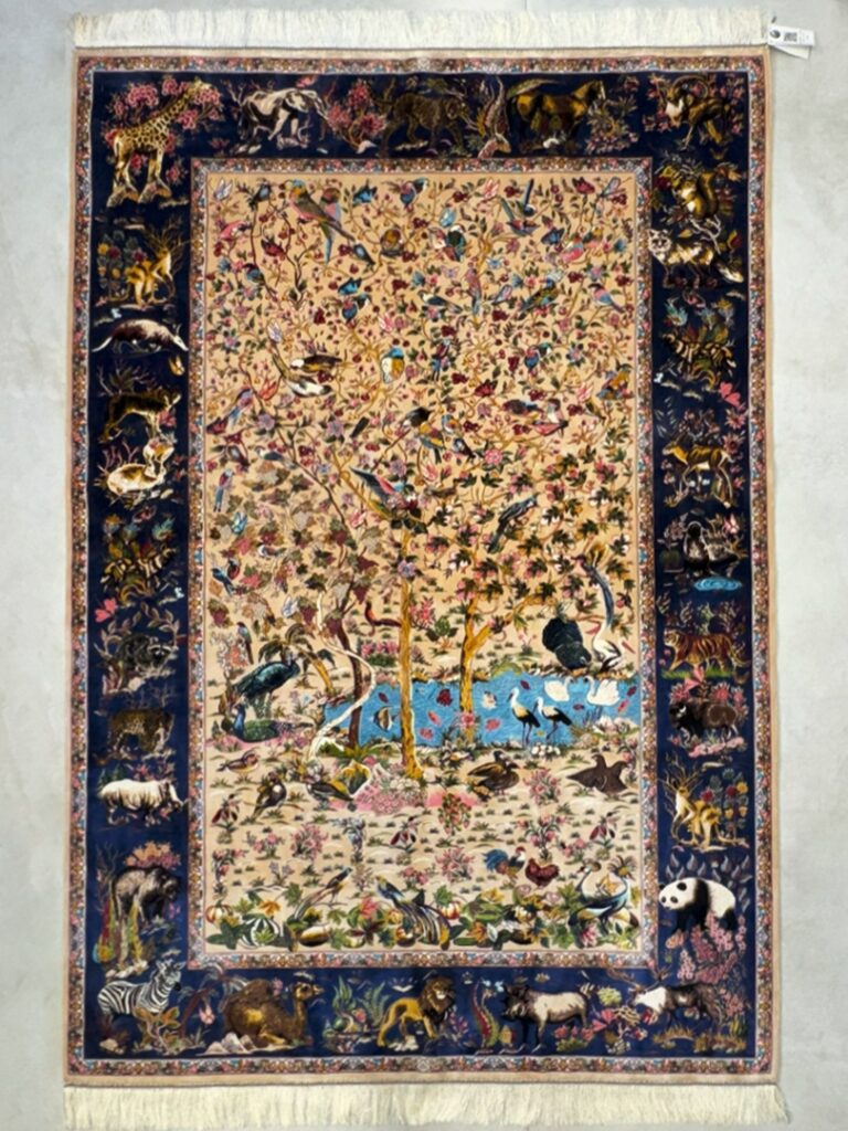 ربات بافت قم 150*225 مستطيل افريقا 70 رج ابريشم و بنبوسيلک کرم سورمهاي 8 Kg