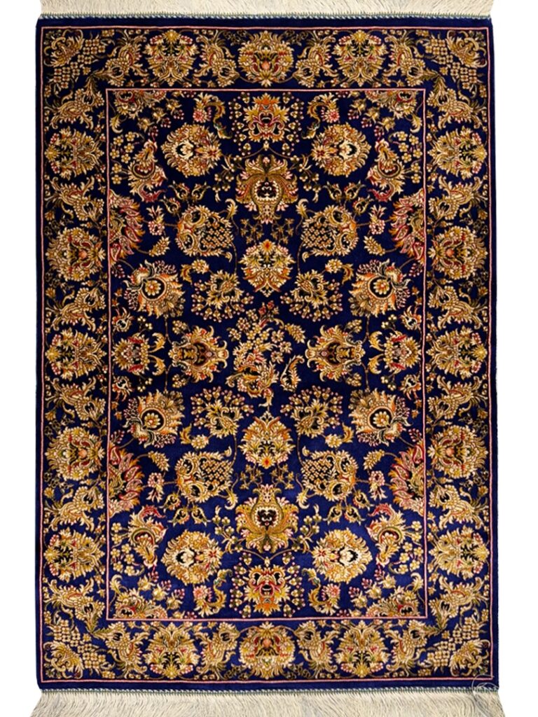 ربات بافت قم 80*120 مستطيل افشان 70 رج ابريشم و بنبوسيلک سورمهاي و طلايي سورمهاي و طلايي kg1 پ